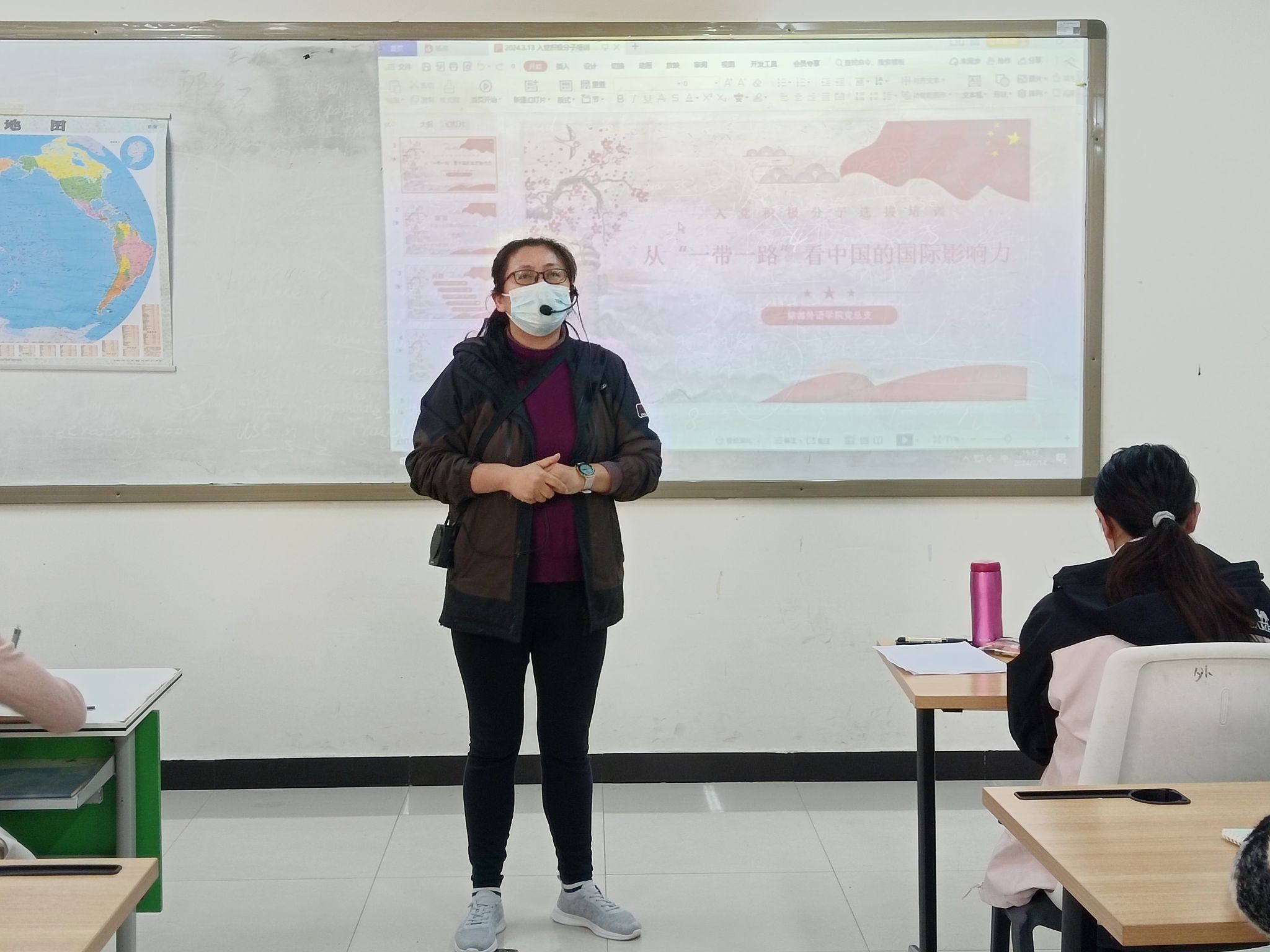 3月14日,旅游外语学院在清源楼207教室开展了入党积极分子培训班第四讲。旅游外语学院教工第二党支部书记常晓霞以《从“一带一路”看中国的国际影响力》为题授课,全体入党积极分子共同参与。