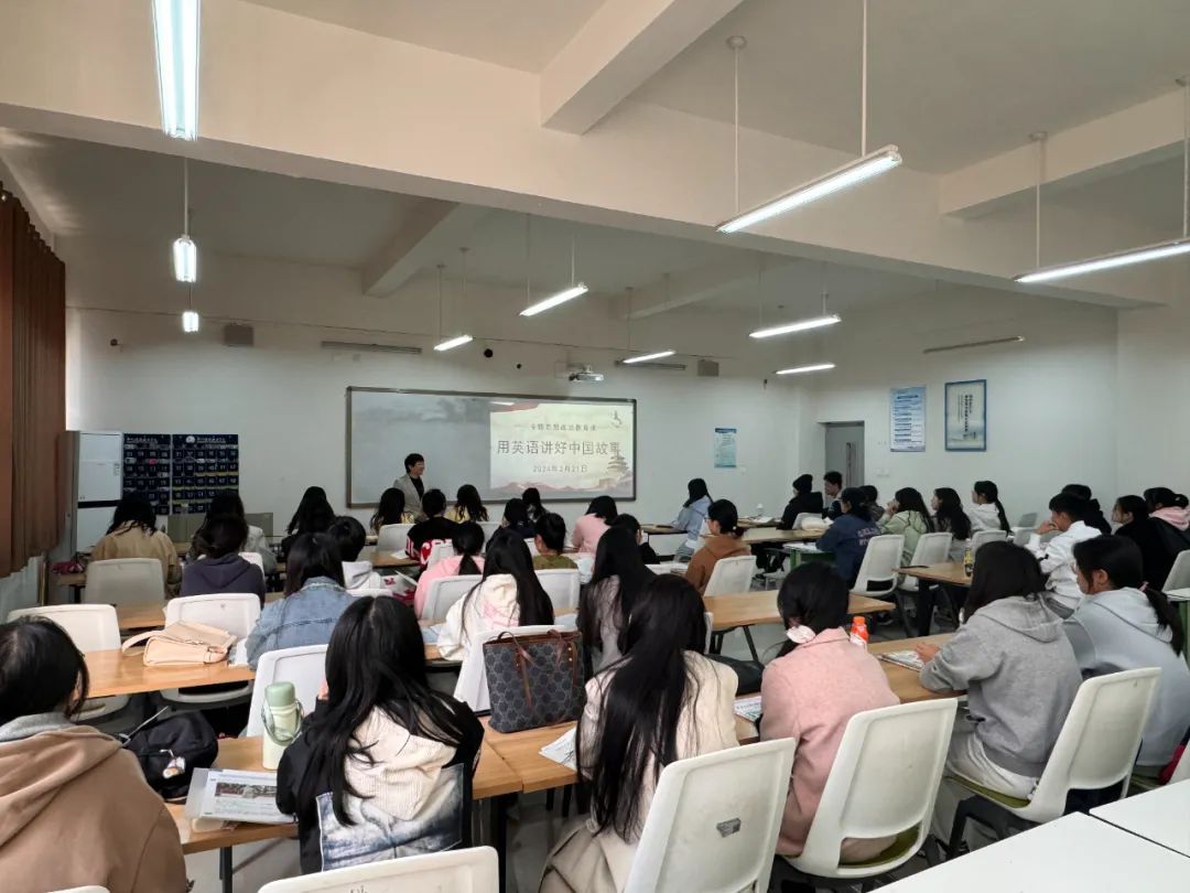 张贺玲强调讲述中国故事是时代命题,讲好中国故事是时代使命。中华优秀传统文化博大精深、源远流长,“用英语讲好中国故事”以故事为桥,让学生更好地感知中华优秀传统文化,涵养家国情怀,坚定文化自信。张贺玲给学生提出了希望与要求:要延续文化基因,萃取思想精华,展现精神魅力,弘扬家国情怀,拓宽国际视野,用语言充实生命,让中华优秀传统文化跨越国界。