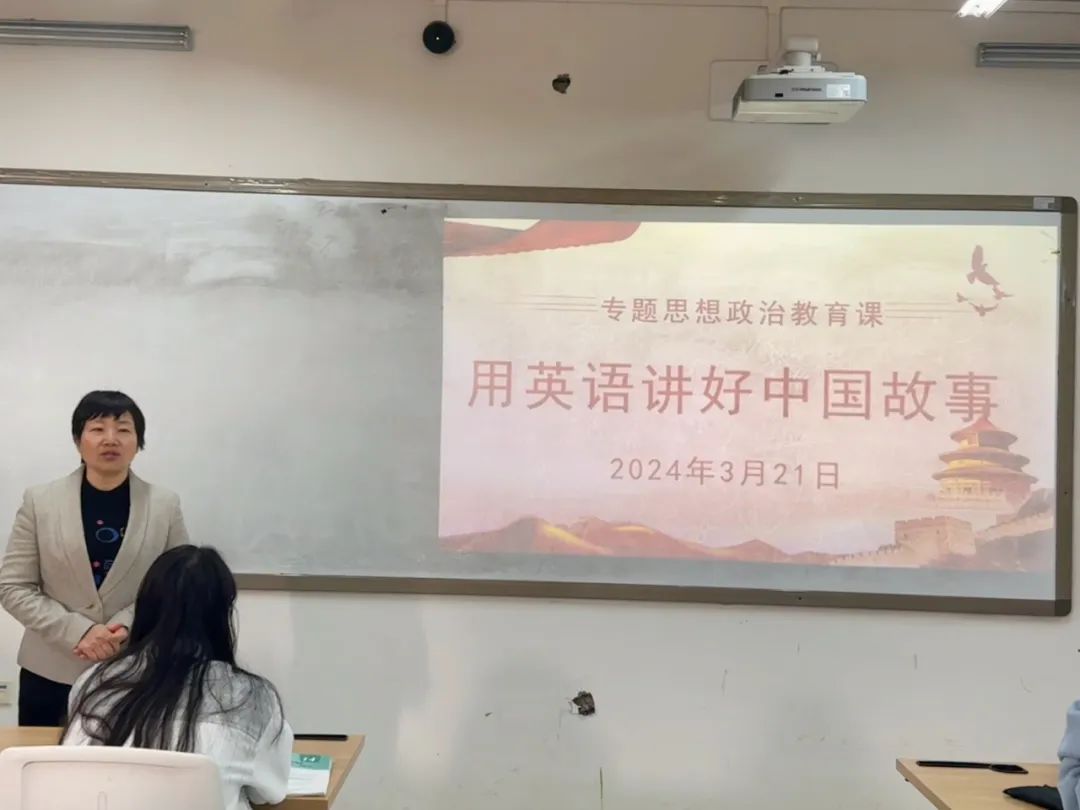 为了引领学生坚定文化自信,为传播中华优秀传统文化贡献青春才智,3月21日旅游外语学院院长张贺玲在清源楼207教室以《用英语讲好中国故事》为题,为学生讲授专题思想政治教育课。