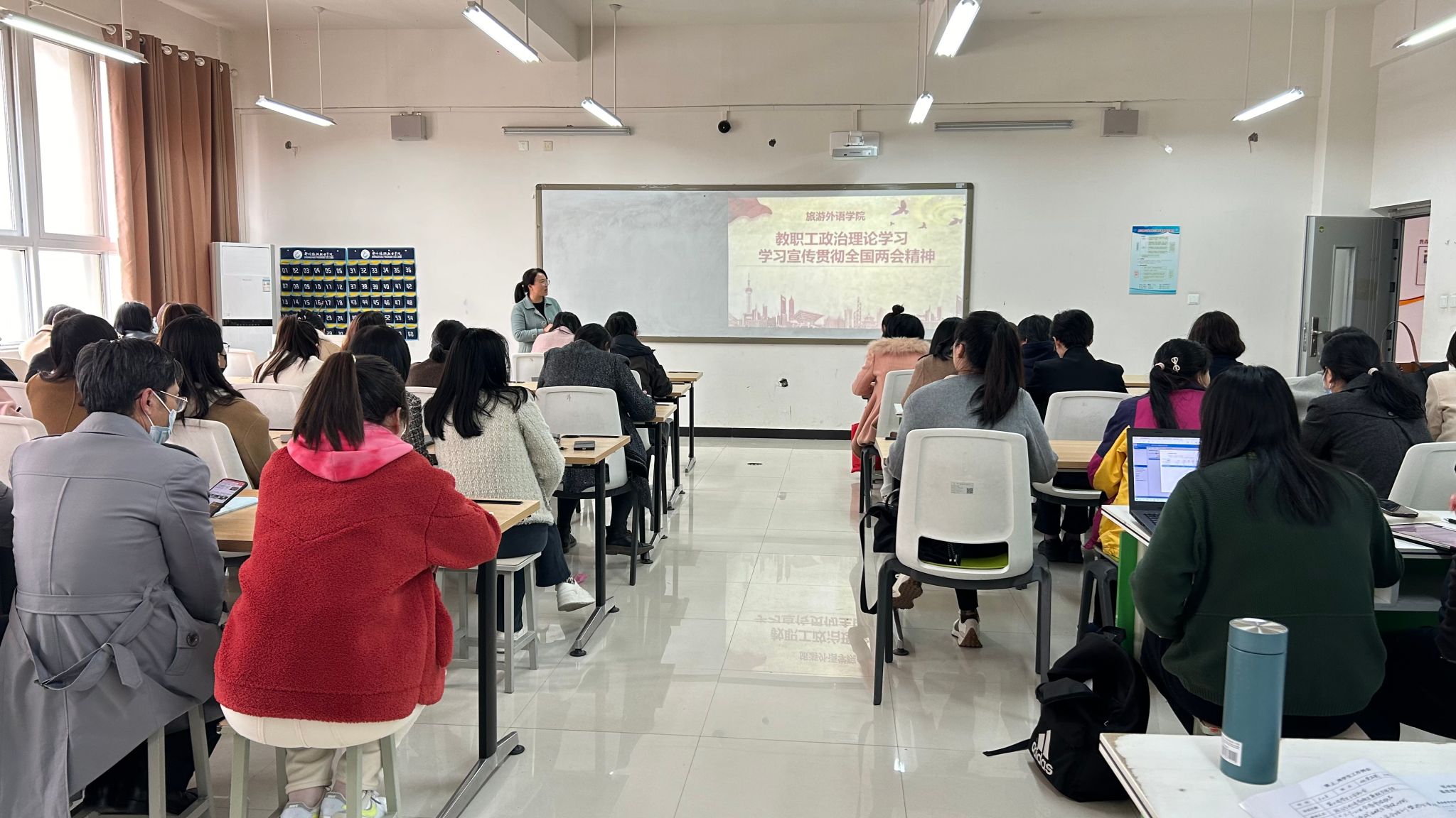 为全面学习宣传贯彻全国两会精神,深刻领会、准确把握两会精神实质,旅游外语学院全体教职工于3月27日在清源楼207教室开展政治理论学习。