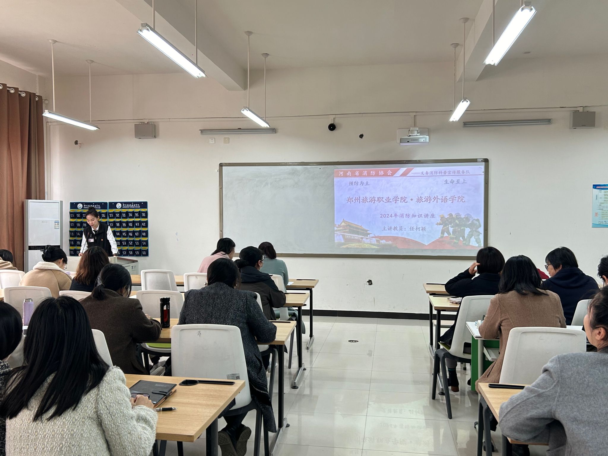 为切实增强学院全体教职工的消防安全意识,掌握逃生自救常识,3月27日旅游外语学院邀请省消防协会任柯颖教官对教职工开展消防知识普及宣讲活动。