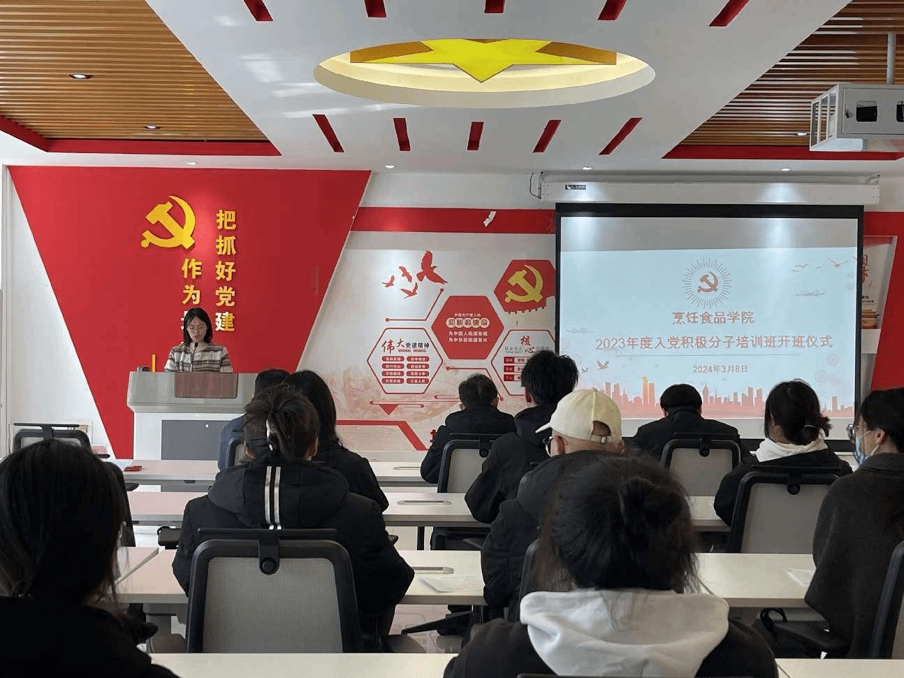 为加强党的基本理论知识教育,根据《中国共产党发展党员工作细则》和学校组织部关于入党积极分子培训工作的有关要求,我院党总支于2024年3月8日下午14:00在2B209党建活动室举行2023年度入党积极分子开班仪式。