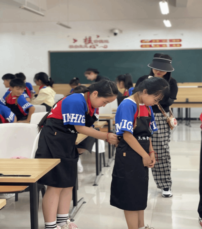 劳动实践——学员们相互帮助系小围裙