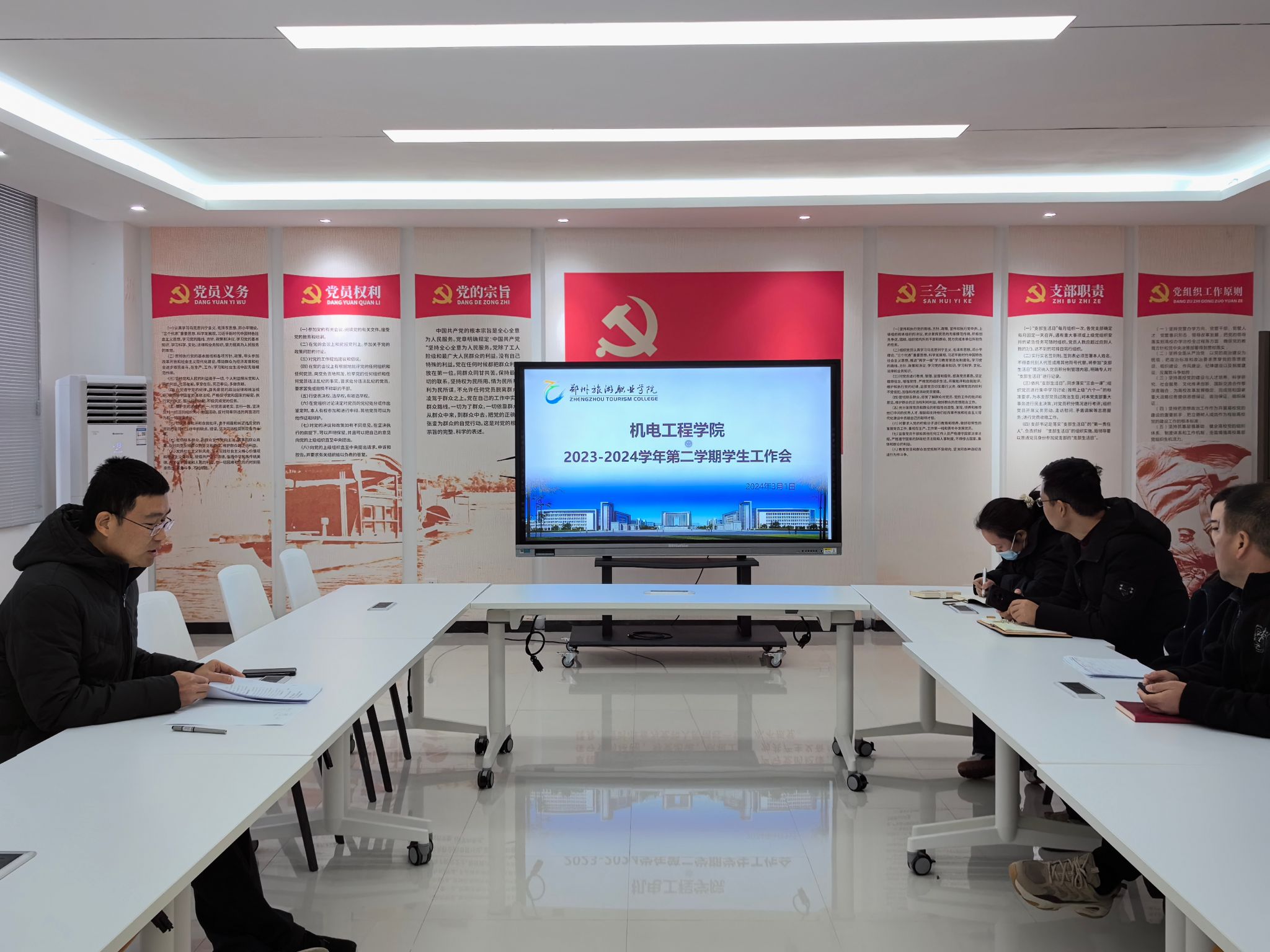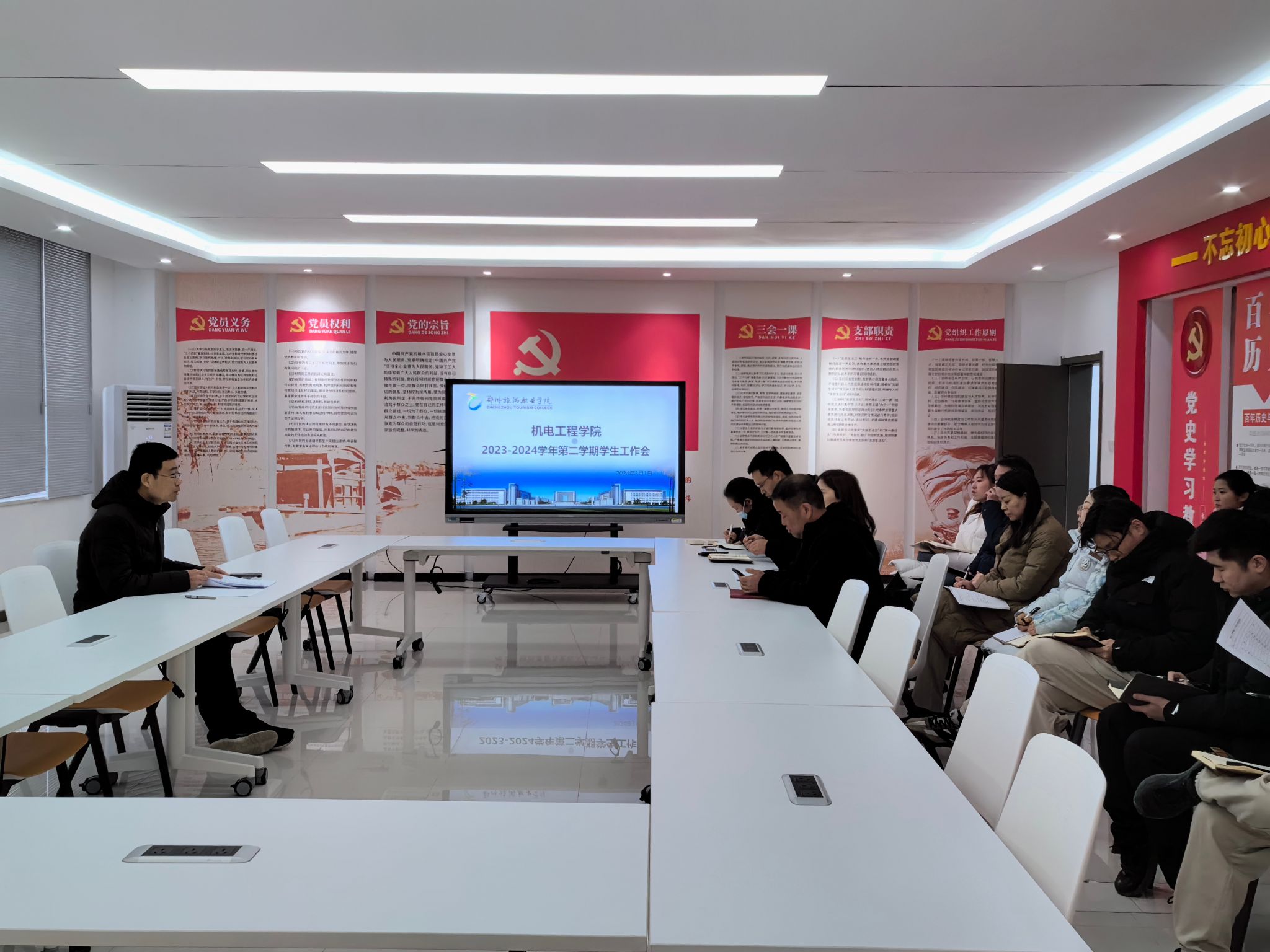为确保新学期各项工作平稳、有序、高效开展。3月1日上午,机电工程学院在1A212召开2023-2024学年第二学期学生工作会。全体专兼职辅导员、班主任参加会议。 会议由党总支书记张培彦主持召开。