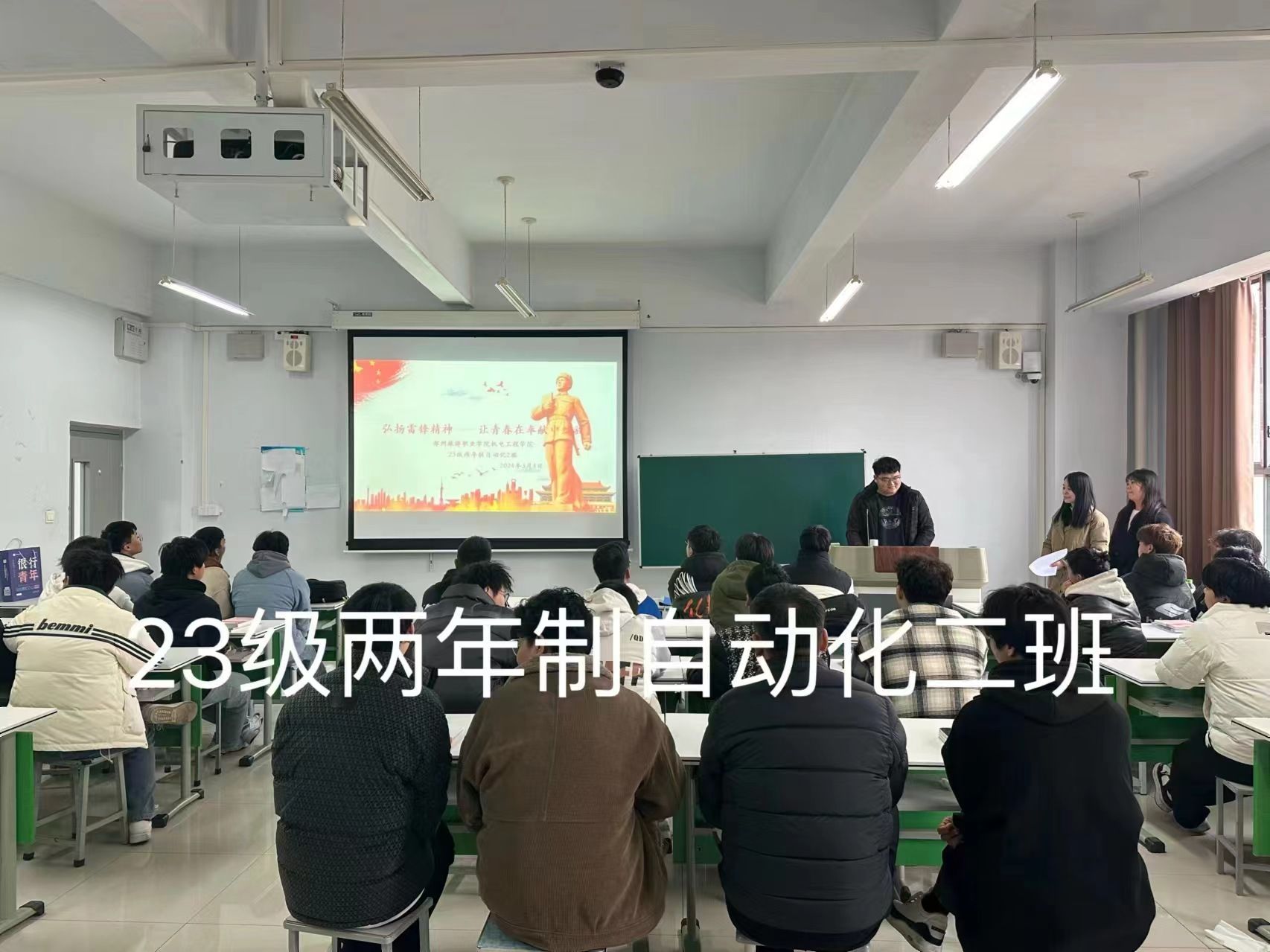 为传承和弘扬雷锋精神,培养同学们关爱他人、奉献社会的意识,机电工程学院于本周召开“弘扬雷锋精神——让青春在奉献中绽放”主题班会,班会上,班主任通过课件带领同学们回顾了雷锋同志的生平。随后,同学们分组讨论了雷锋精神的内涵和在现代社会中的意义。大家积极发言,分享了自己对雷锋精神的理解,并表达了在日常生活中践行雷锋精神的决心。