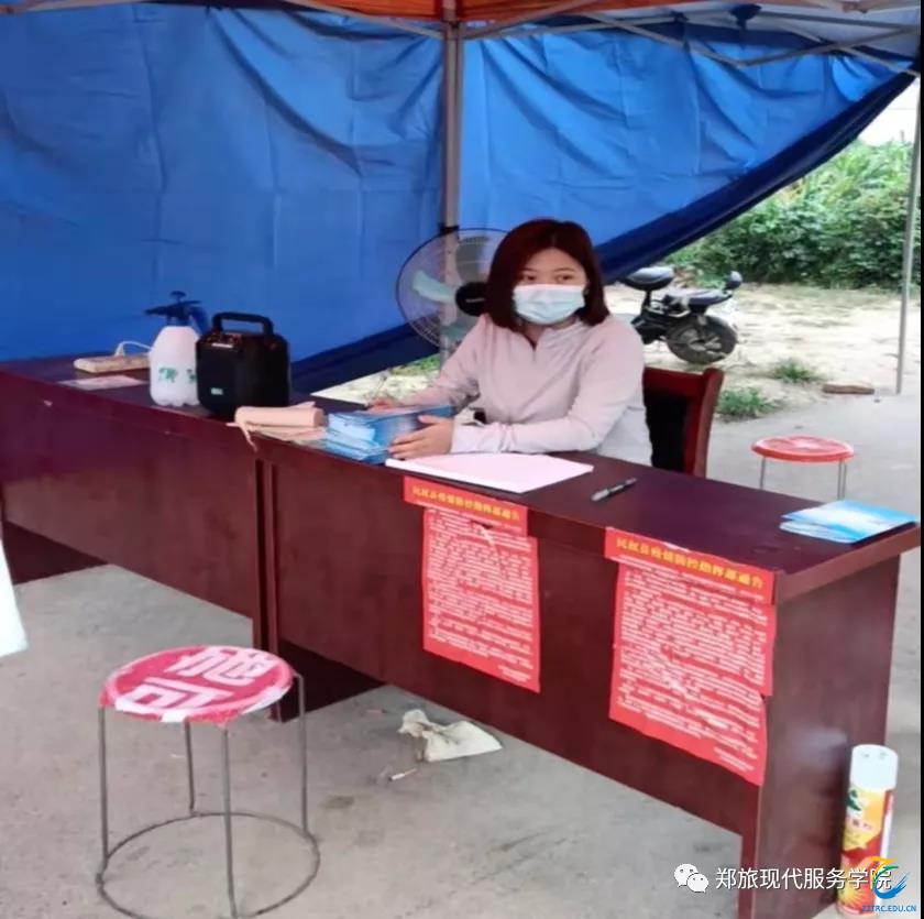 现代服务学院21级空中乘务四班马悦琪参加了当地疫情防控志愿工作,主要负责登记来往人员信息、测量体温、对来往车辆进行消毒。她说:“通过这次志愿活动让她理解了‘从群众中来到群众中去’的真正含义,认识到只有把个人命运同社会、国家命运联系起来才是青年成才的正确道路。”