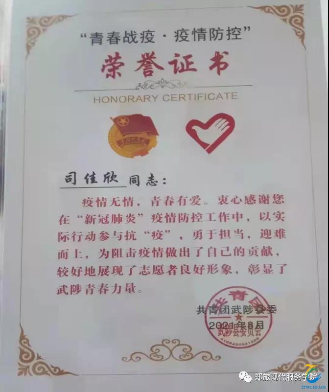 现代服务学院21级婚庆服务与管理一班刘天赐参加了抢险救灾和疫情防控志愿工作,主要负责登记来往人员信息。疫情就是命令,防控就是责任,他全力以赴,积极奋战,诠释了新时代青年的责任与担当,奉献了青春的力量。