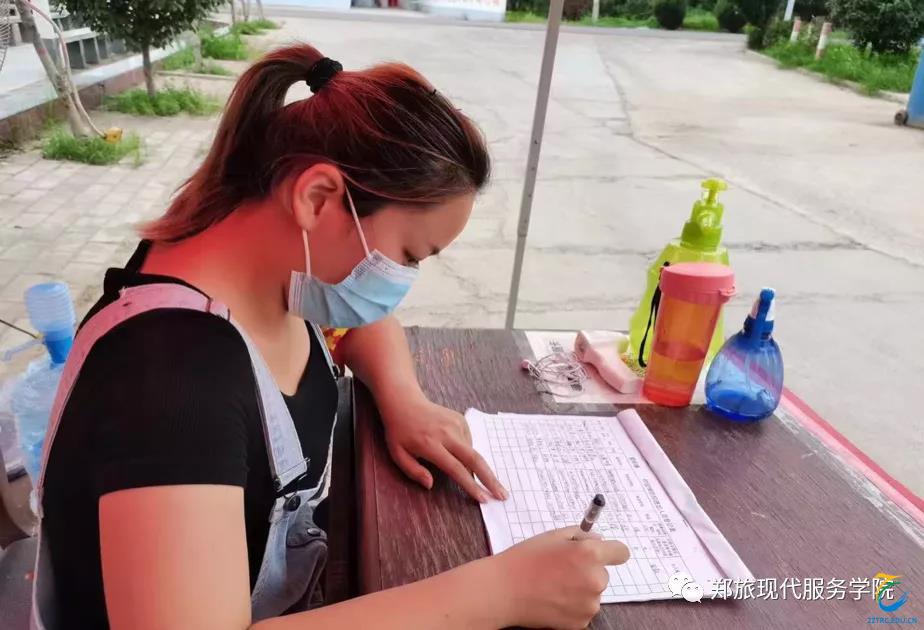 现代服务学院21级婚庆服务与管理一班杨柳媚参加了当地疫情防控志愿工作,主要负责测量体温,查看来访人员到行程码并登记信息。面对异常严峻的疫情形势,她以身作则,勇挑重担,用实际行动诠释了志愿者精神。