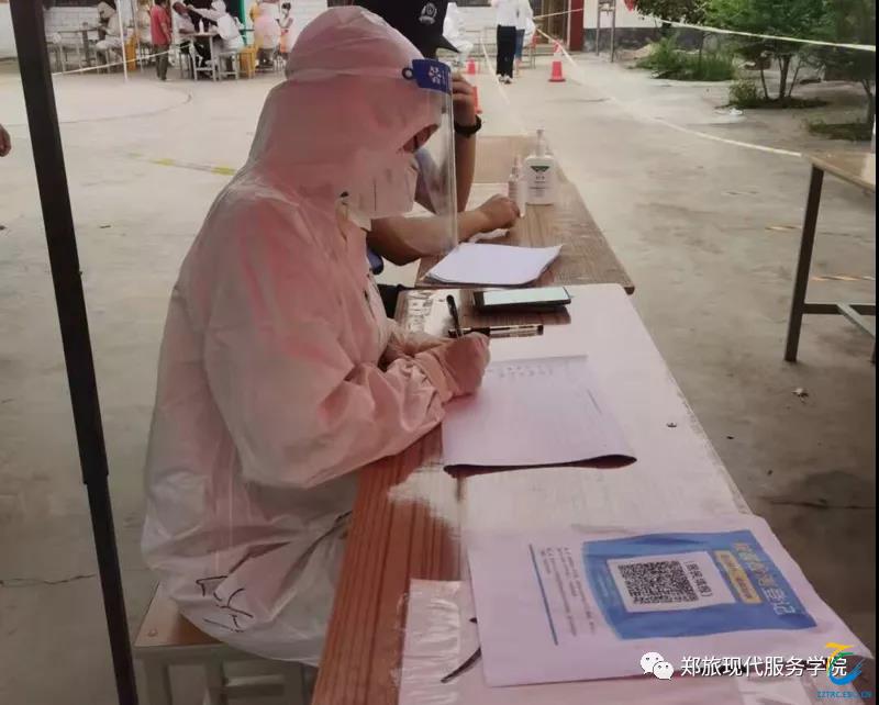 现代服务学院21级空中乘务五班兰书棋参加了当地疫情防控志愿活动,主要负责排查新冠疫苗接种情况,提醒没有接种疫苗的居民抓紧接种疫苗。她说:“作为一名大学生,虽不能像医护人员在前线救人,但能为疫情防控奉献自己的力量时也很开心。”