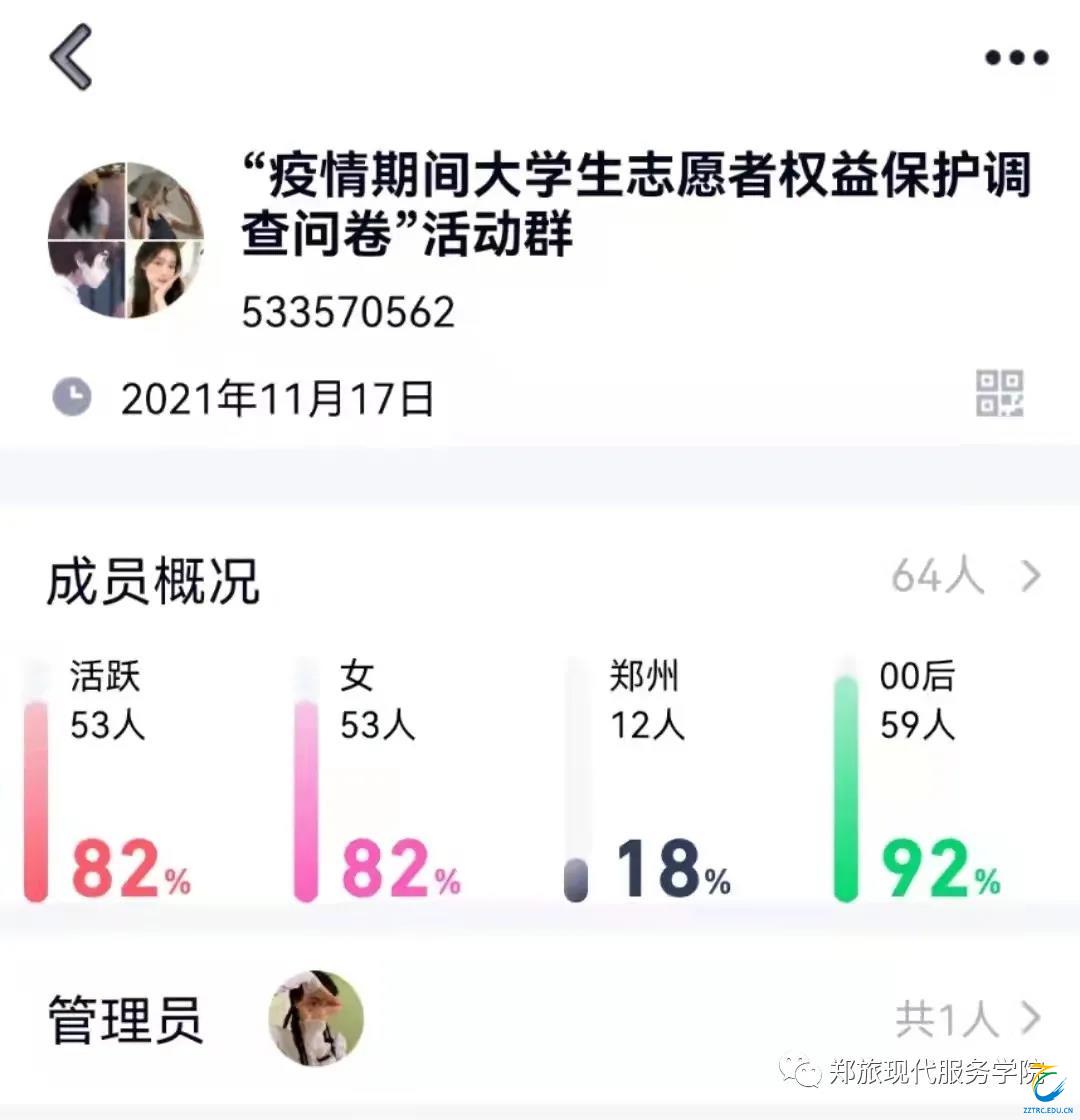 11月18日下午5:00-5:30,为维护大学生志愿者权益,发挥好桥梁作用,由现代服务学院权益部主办的“疫情期间大学生志愿者权益保护调查问卷”活动于特定的qq群展开进行。