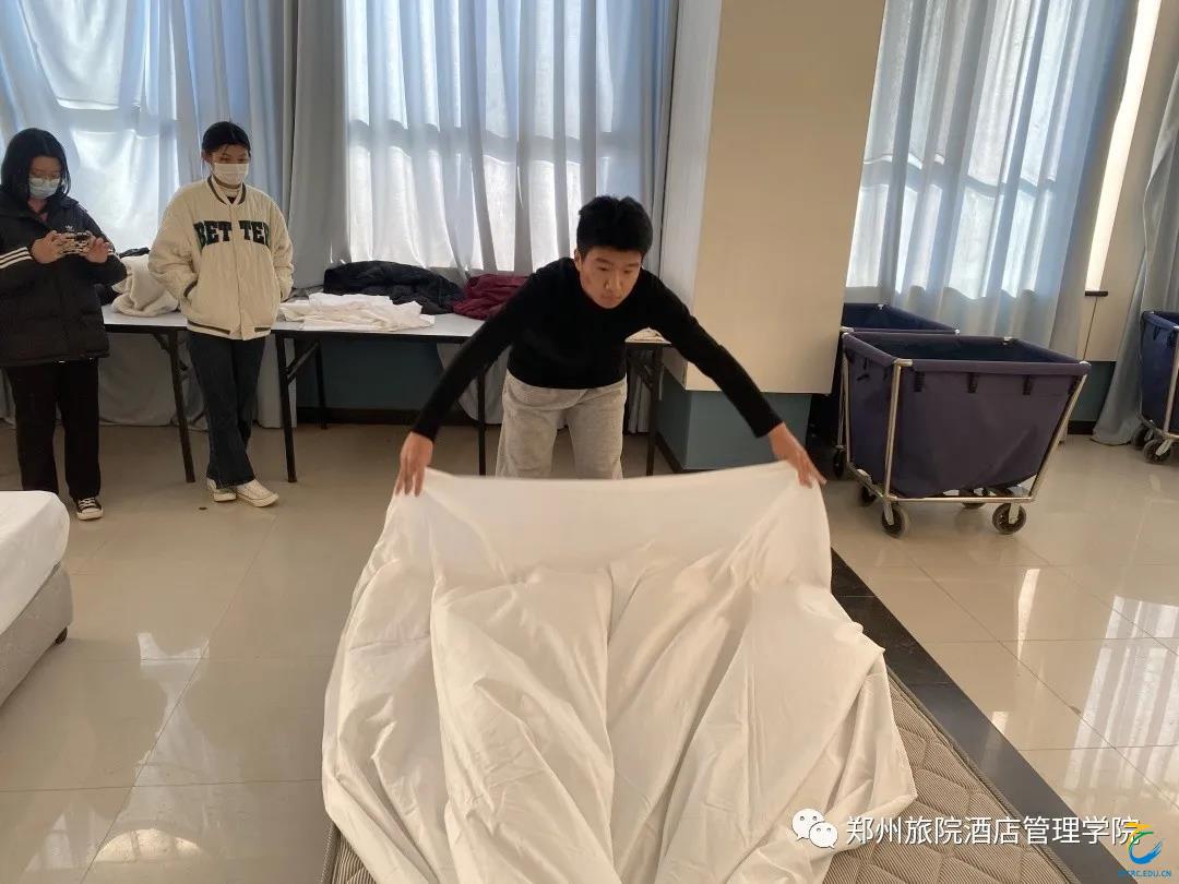 此次比赛由中式铺床和鸡尾酒调制两个项目组成,由各班选派参赛选手,经班主任和指导老师综合推选出一个代表队参加比赛,比赛通知一发出,同学们便踊跃报名,目前已进入赛前培训阶段。