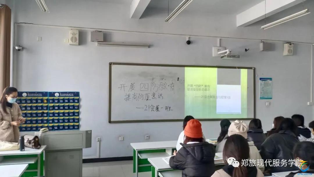 为进一步帮助学生们增强冬季防护意识,保障学生的人身安全。现代服务学院20级、21级各班学生于2021年11月22-24日在一号教学楼开展了“四防”教育,提高安全防范意识(防风、防冻、防滑、防高空坠物)”主题班会。