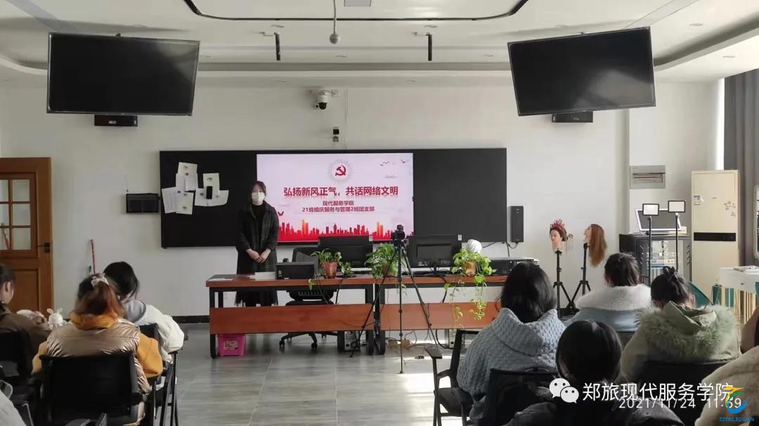为充分发挥法律监督职能作用,促进网络治理体系和治理能力现代化,共建清朗文明的网络空间。现代服务学院20级、21级各班学生于2021年11月22日在一号教学楼开展了“弘扬新风正气,共话网络文明”主题班会。