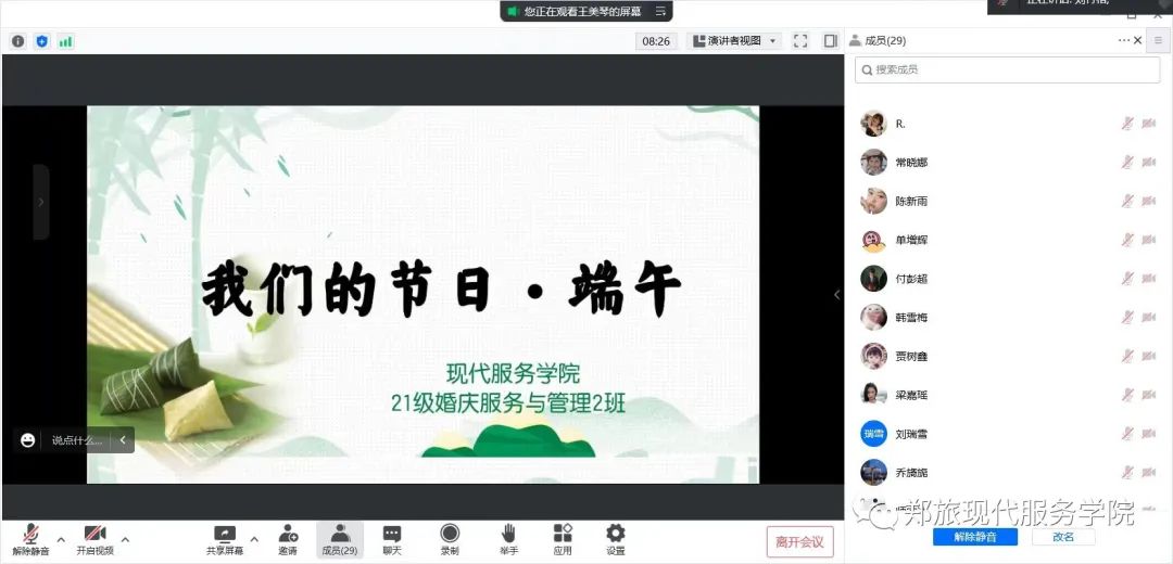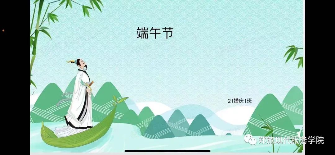 每一个端午,“粽”有相思粽叶的清香带着糯米的气息让人盼着念着的盛夏风物奔赴山海,如期而至,与你相遇,为了让同学们充分了解“端午节”,感受其丰富的文化内涵,结合学院实际,现代服务学院21级各班学生于2022年5月31日在线上开展我们的节日·端午主题班会。