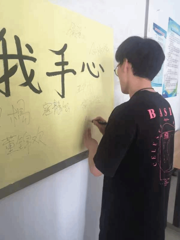 为了加强对广大学生的法治教育,丰富学生的法律意识和自我保护能力现代服务学院于4月19日下午,在教学楼1A504教室开展了主题为“法治伴我行,我签我手心”的签字活动。