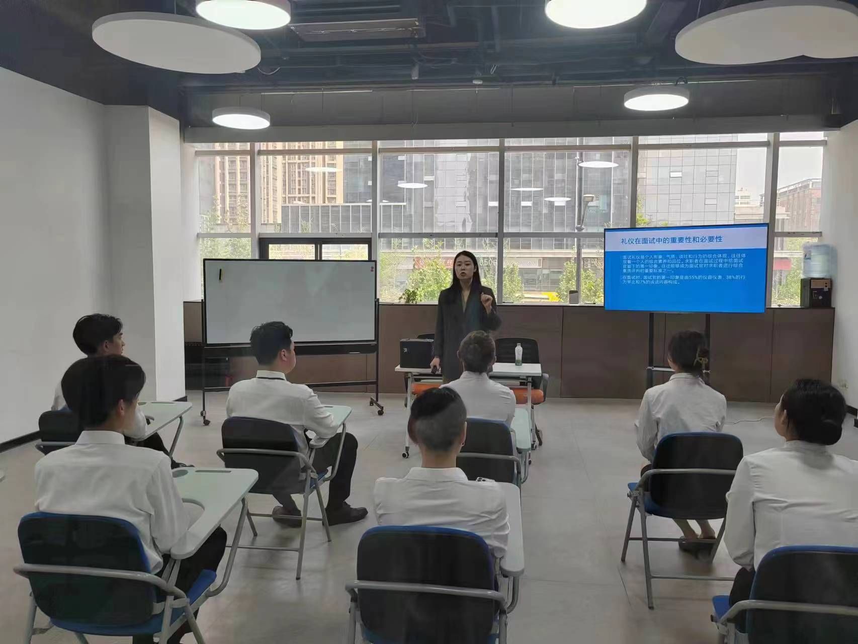 为贯彻落实党中央、国务院关于高校毕业生就业工作的决策部署,扎实落实全国高校访企拓岗促就业专项行动,全面深化校企合作、供需对接,促进毕业生更加充分更高质量就业,4月19日,现代服务学院定琦副院长带队赴中航教育培训有限公司开展“访企拓岗”专项行动,实习实训干事邵小明陪同。