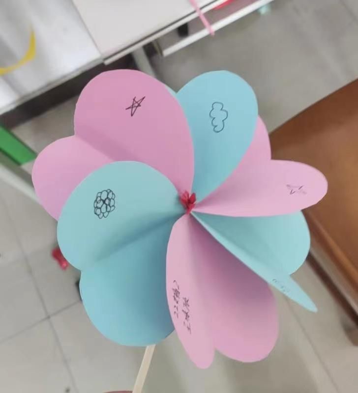 此次活动采用折风车的方式让同学们动手动脑,互相交流沟通,以做出更加漂亮的风车,引导同学们从构架,装饰等综合方面提升同学们感受美,发现美,表现美的能力。