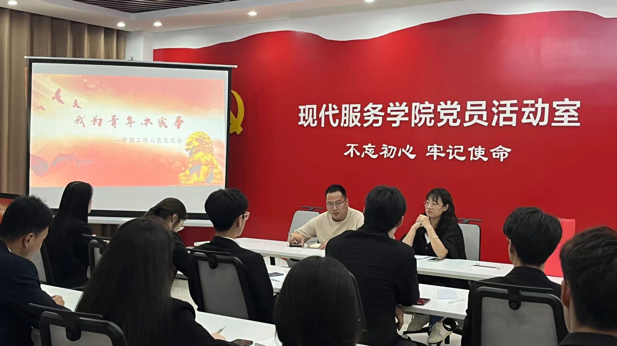 为深入学习贯彻落实党的二十大精神,积极发挥团学组织的思想引领和模范带头作用,现代服务学院于2023年5月29日下午1A208会议室召开了我为青年办实事——学团交流大会。现代服务学院学生团总支书记段会利、辅导员石帅出席会议,现代服务学院学生会执行主席贾冰冰及19位同学参加本次会议。