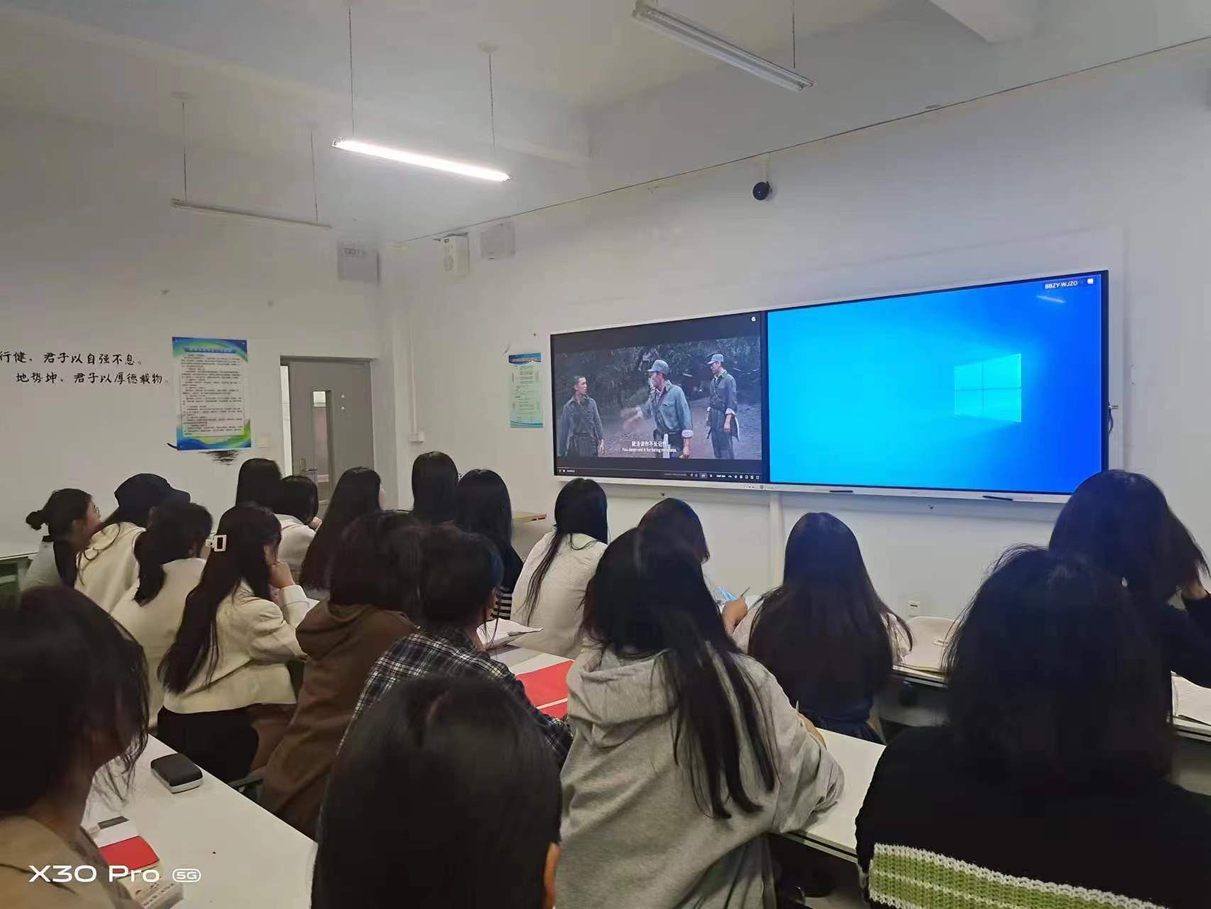 此次观影活动,加深了同学们对无数革命先烈抛头颅,洒热血换来的和平生活的珍惜,激发了他们的爱国热情和强国之志。作为新时代青年,我们应当志存高远,脚踏实地,常怀感恩之心。