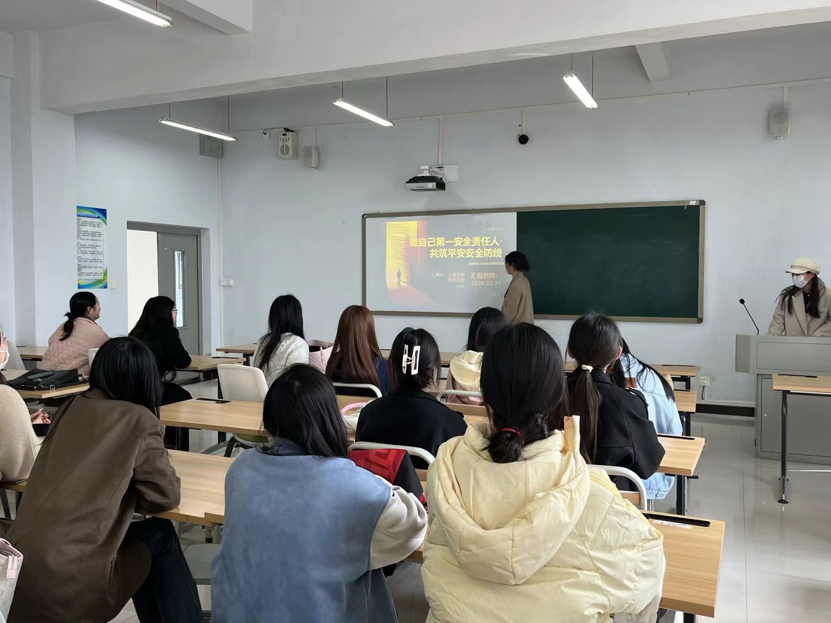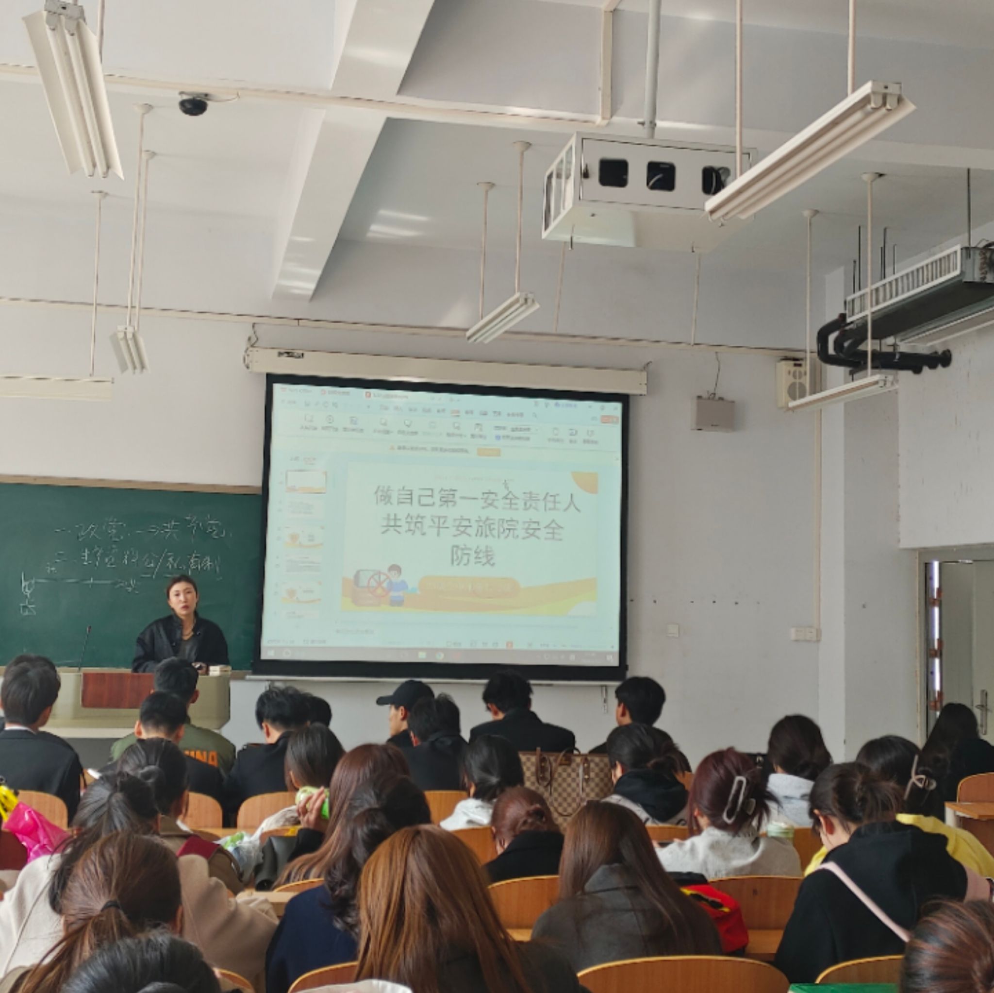 为了加强校园安全管理,增强学生安全防患意识,提高自我救护能力,进一步养成安全的行为习惯,现代服务学院于3月11日组织全体学生在1A教学楼开展“做自己第一安全责任人·共筑平安旅院安全防线”主题班会。