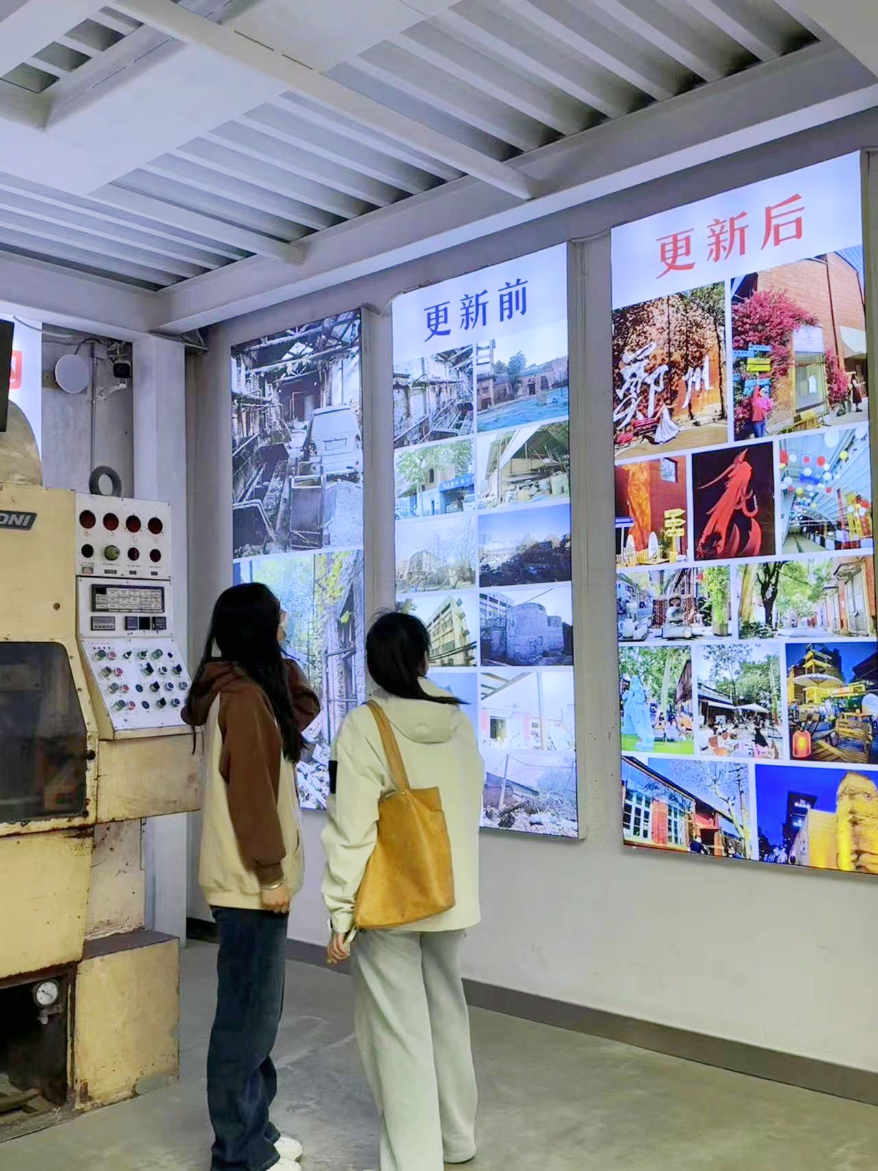 在党建文化馆内,大家依次参观党的百年历史、百年郑州、油化厂的历史变革等展区,旧机器保持原址,老物件讲述岁月记忆,“肥皂玻璃路线图”带大家领略70年老厂巨变。通过油化厂更新前后的照片对比,感受园区显而易见的巨大变化和党建文化的魅力。