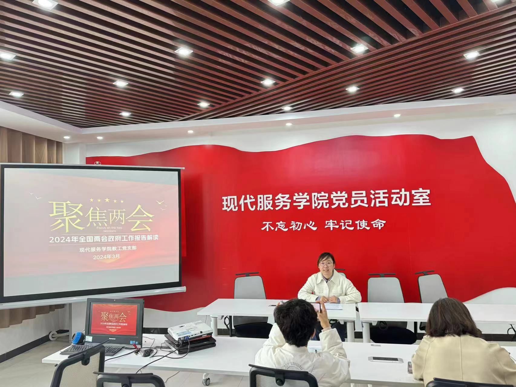为进一步学习贯彻落实全国两会精神,推动学院党建与事业发展深度融合,深刻领会习近平总书记在全国两会期间的重要讲话精神,进一步统一思想,凝聚力量,推动学院各项工作再上新台阶。2024年3月20日,现代服务学院教工党支部在1A208召开了全面学习宣传贯彻全国两会精神党员大会。会议由现代服务学院教工党支部书记张莹主持,全体支部党员参加。
