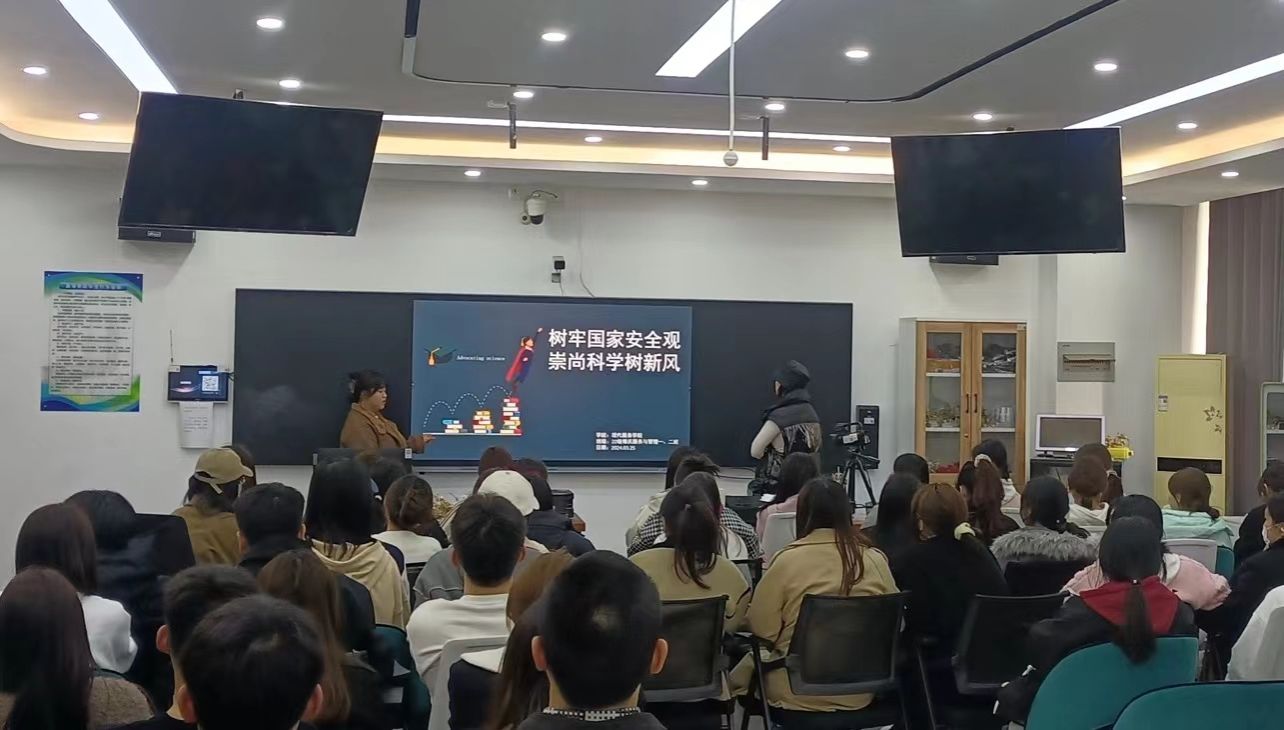 为持续推动学校防范邪教警示教育宣传工作,切实提高师生识邪防邪拒邪能力,努力营造崇尚科学文明、倡树新风正气的浓厚氛围,现代服务学院于3月25日组织全体学生在1A教学楼召开“树牢国家安全观、崇尚科学树新风”主题班会。