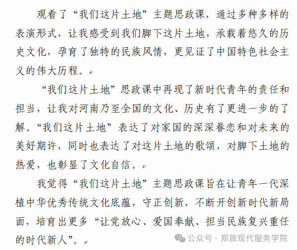 泱泱华夏,巍巍山河。为深化转化高校学习贯彻习近平新时代中国特色社会主义思想主题教育成果,推动各高校深入落实“时代新人铸魂工程”,现代服务学院于2024年5月16日组织全体师生收看全省高校校园原创文化精品项目展演暨 “我们这片土地”主题思政课活动的直播。