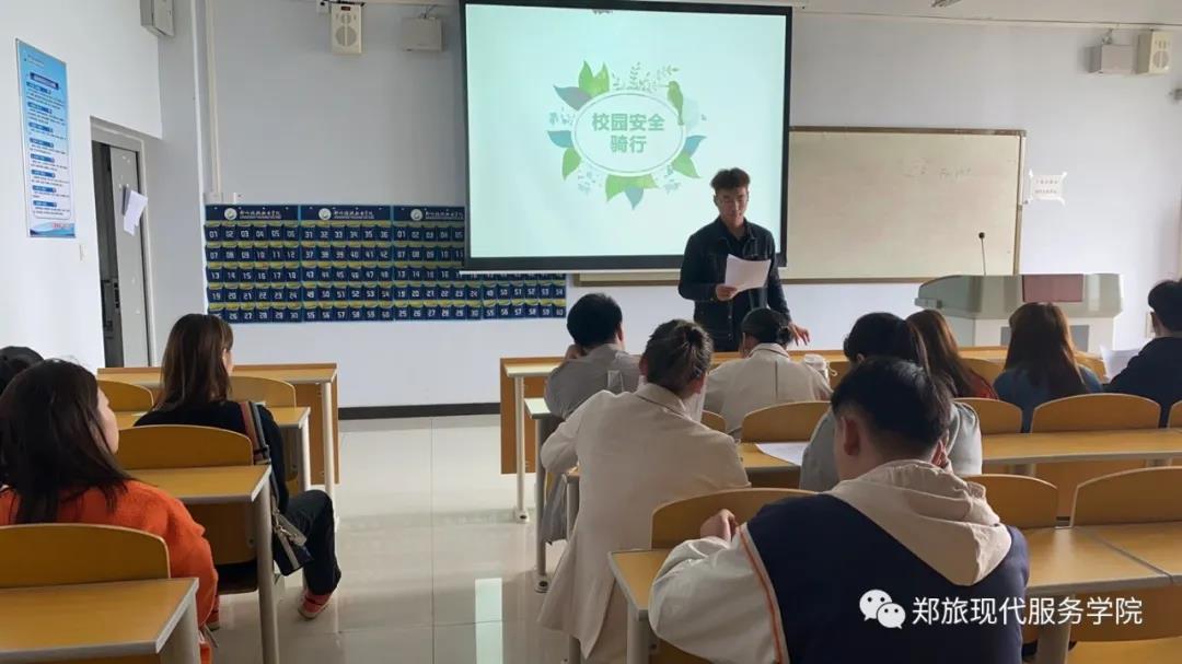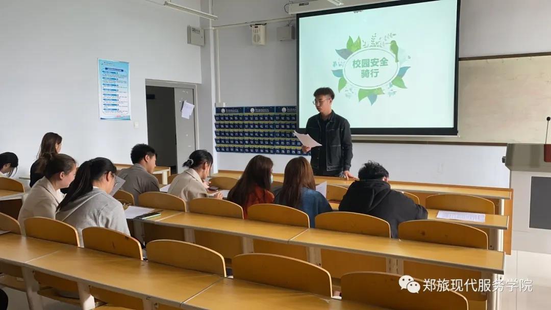 为了让同学们在校园安全骑行,现代服务学院安全负责人石帅老师在2021年4月22日开展校园安全骑行会议。