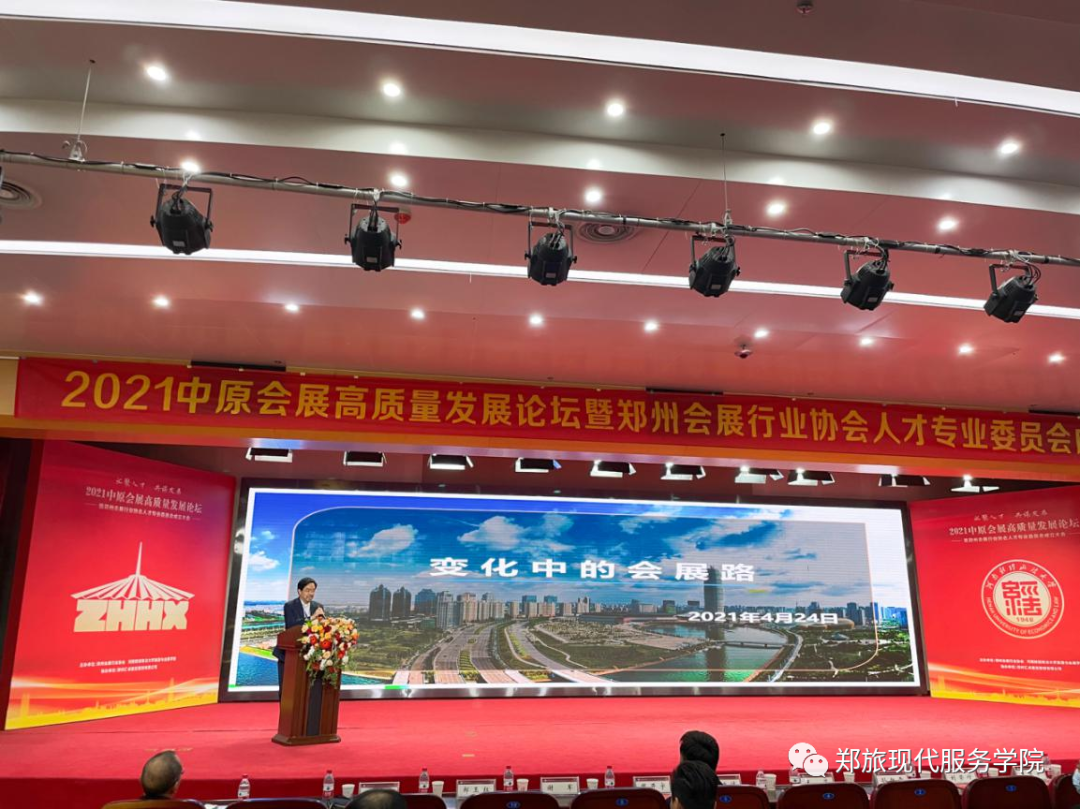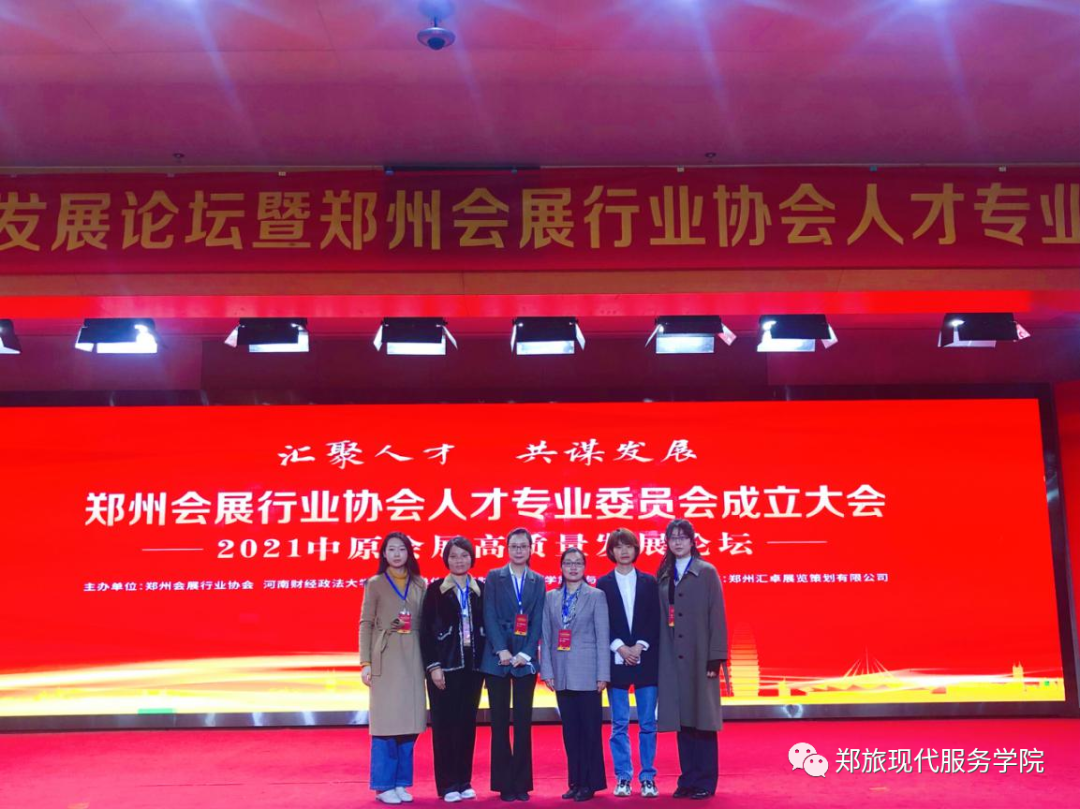2021年4月24日,“2021中原会展高质量发展论坛暨郑州会展行业协会人才专业委员会成立大会”在河南财经政法大学龙子湖校区图书馆学术报告厅隆重召开,现代服务学院院长许向蒲携会展策划与管理专业全体教师前往参加此次大会。