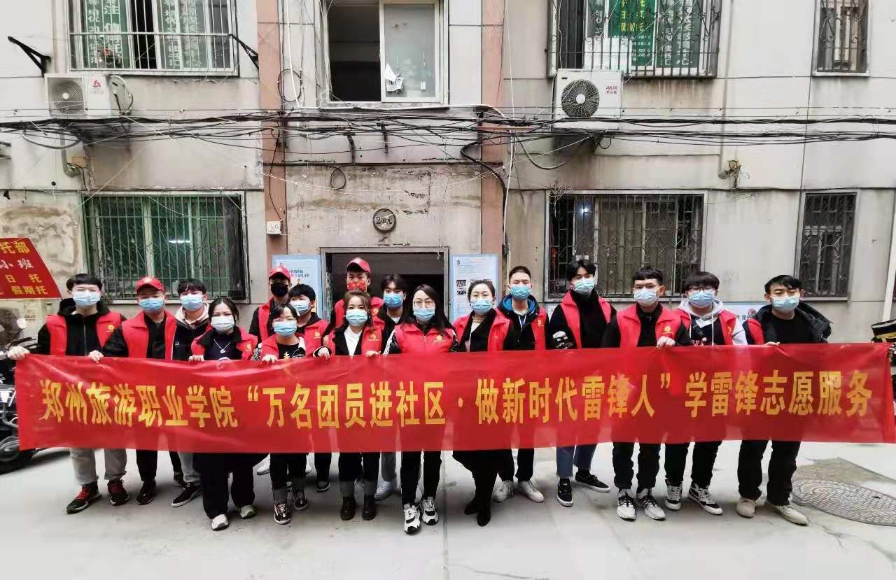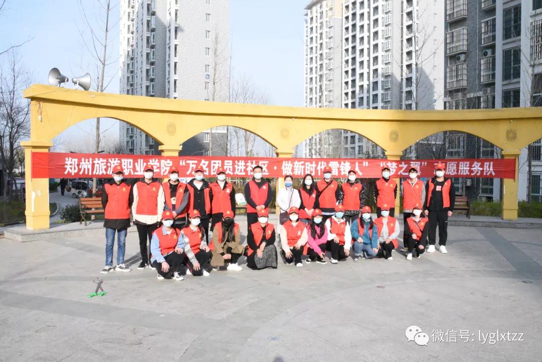 3月5日上午9:00,旅游管理学院团总支书记金慧慧、信息工程学院团总支书记李舒分别联合郑东新区豫兴路办事处刘集小冉庄社区、金水区未来路办事处升龙社区开展“万名团员进社区•做新时代雷锋人”志愿服务活动。共50余名师生参加。