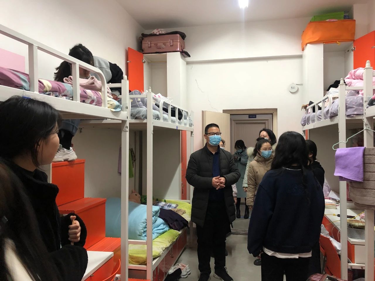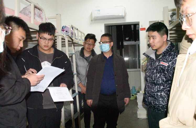 开学伊始,为确切了解和及时掌握返校学生的思想、生活等情况,3月7日晚7点,我院党总支书记秦合岗带领全体辅导员深入学生宿舍看望学生。