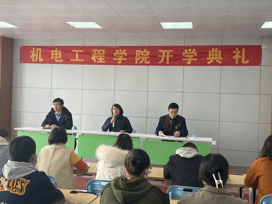 机电工程学院于2021年3月7日下午在教学楼1A313开展春季开学典礼。此次会议由院长张之红、党总支书记张培彦、团总支书记马彦锋和各班辅导员老师及学团干部代表参加。