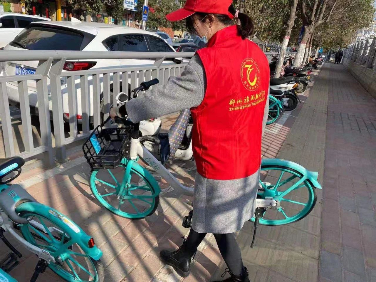党员们一大早到豫英街道,本着“奉献、友爱、互助、进步”的志愿服务精神,通过指挥交通,把路边散乱放置的共享单车摆放整齐,捡拾路边的垃圾、烟头,打扫街道卫生,擦拭门店窗户或者玻璃,创造了一个干净整洁的街道,践行着“绿城使者”的使命。