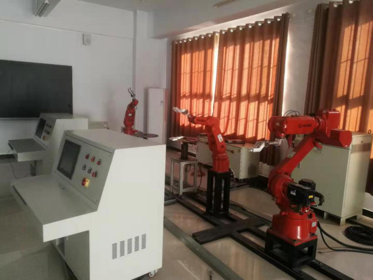 机器人创新实训室是机电工程系专业实训室之一。实训室现有各类机器人系统20台套,机器人系统的配置遵循由浅入深循序渐进的原则,其中基础教育机器人10套,六自由度机械手3台,六脚爬虫机器人3台,人形机器人、两自由度工业机械臂、四自由度工业机械臂和自主移动机器人各1套。主要面向机械制造及自动化、机电一体化技术、数控技术、建筑智能化技术等相关机电控制类课程的实践教学,也可作为机械制造与自动化、机电一体化和自动控制等相关专业学生创新性实践的活动平台。能够承担校内机器人知识培训及机器人兴趣小组,为后期学科竞赛做准备。