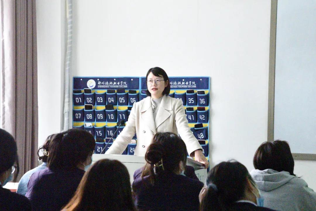 3月29日下午3:00,旅游管理学院院长李俊在5号教学楼为2019级学生讲授思政课,她以“脱贫攻坚 时代责任”为题作报告,学院2019级学生代表参与课程。