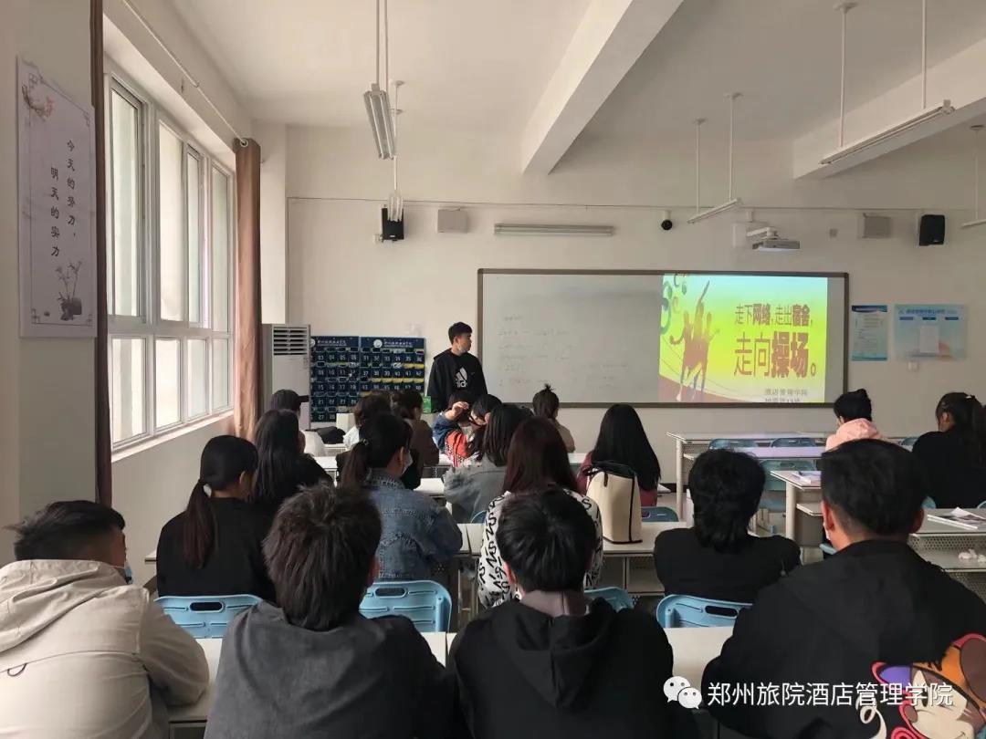为了丰富同学们的课余生活,促进大学生贯彻“身心健康,强健体魄”的目标,引导和帮助同学们提高运动积极性,形成良好的体育锻炼习惯。酒店管理学院于4月6日举办了“走下网络,走出宿舍,走向操场”主题班会。本次活动采用线上线下相结合的形式,鼓励大学生线下坚持健走锻炼,线上进行实时排位,激发青年学生参与体育锻炼的积极性,营造快乐学习、健康生活的良好氛围。