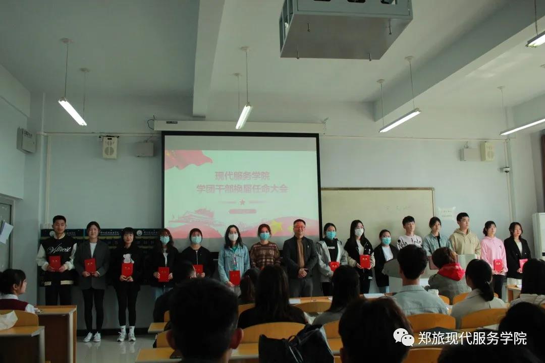 党总支副书记岳正阳宣读新一届学团干部名单,党总支书记郭防为他们颁发聘书并合影留念,小小的聘书却意味着更大的责任和担当。