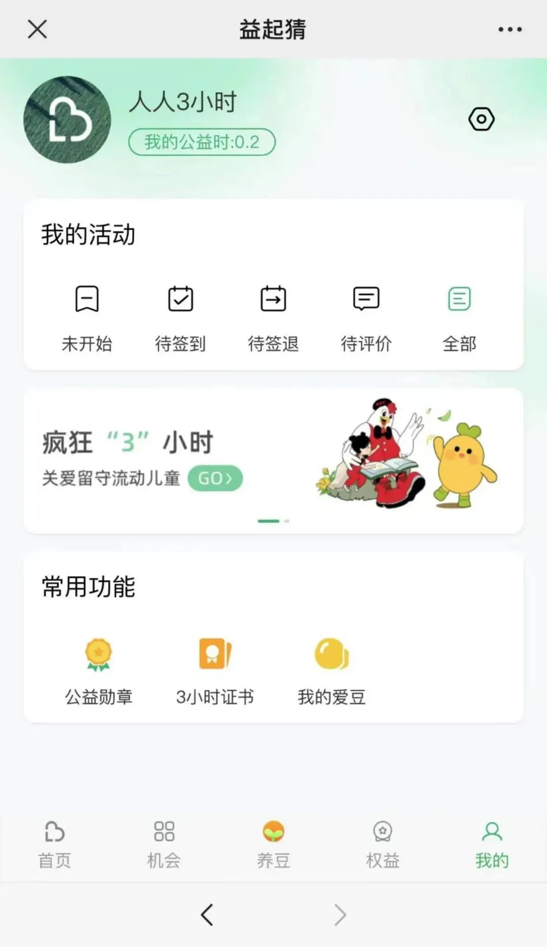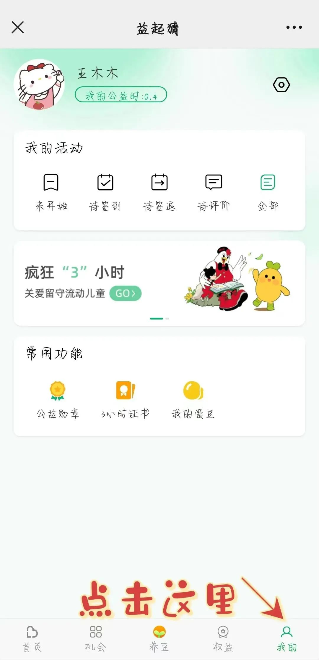 2、点击答题界面的“三小时”,之后点击“我的”,即可获得第二张截图↓