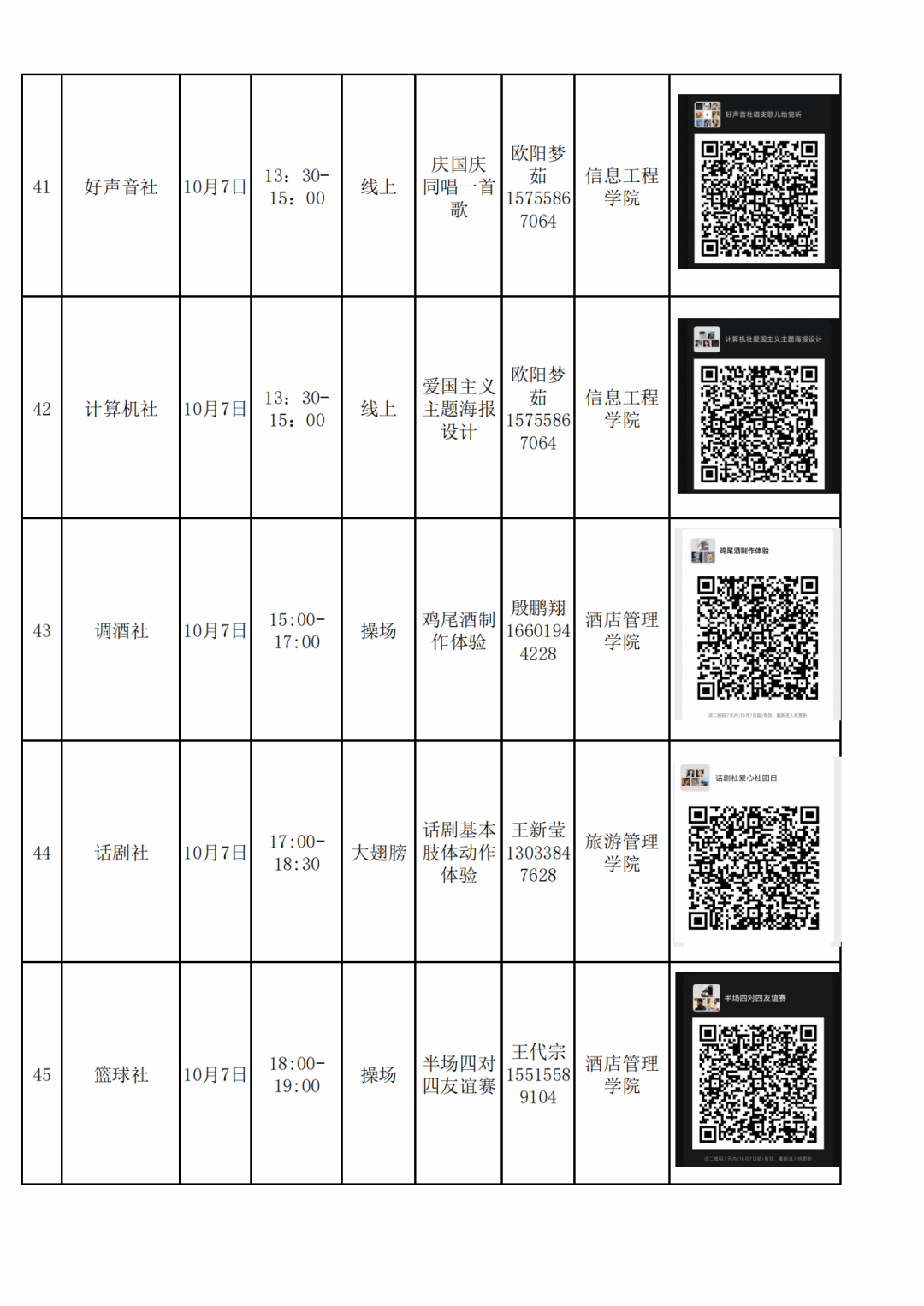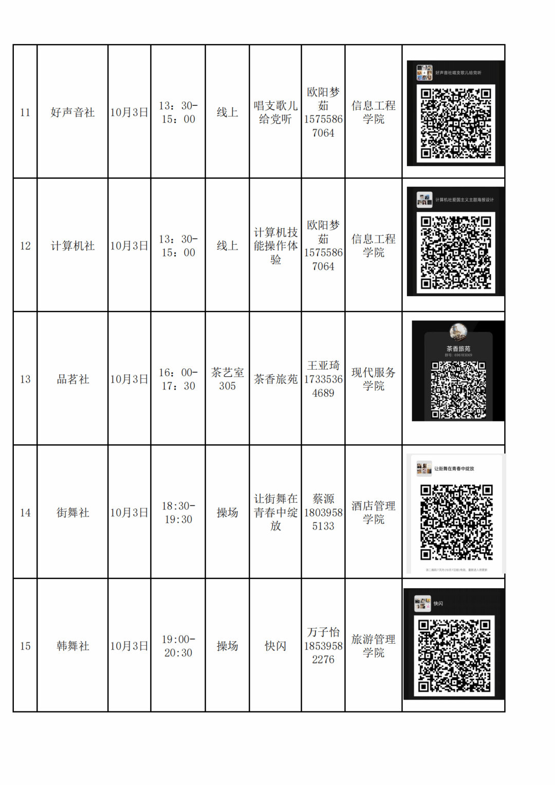 十一假期,因疫情形势严峻复杂,同学们的活动范围受到一定影响。疫情当前,身心健康安全是第一位的,也是爸妈及老师的最大期冀和牵挂。为丰富同学们的校园文化生活,度过一个安全、欢乐、和谐、有趣的十一假期,全校学生社团为同学们提供了青春的饕餮盛宴。总有一款你最喜欢、最感兴趣、最想体验,欢迎同学们及时与社长联系,积极参加社团活动,解锁奥妙密码,来一场别样风味、情操高雅的社团之旅,点亮青春的诗和远方。