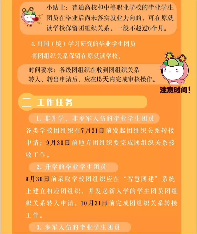 为扩大组织有效覆盖,推进基层团组织规范化建设,破解团员流动性特点带来的学校学生团员毕业后组织管理等问题,团中央决定在“智慧团建”系统上集中开展2019年毕业学生团员团组织关系转接工作。