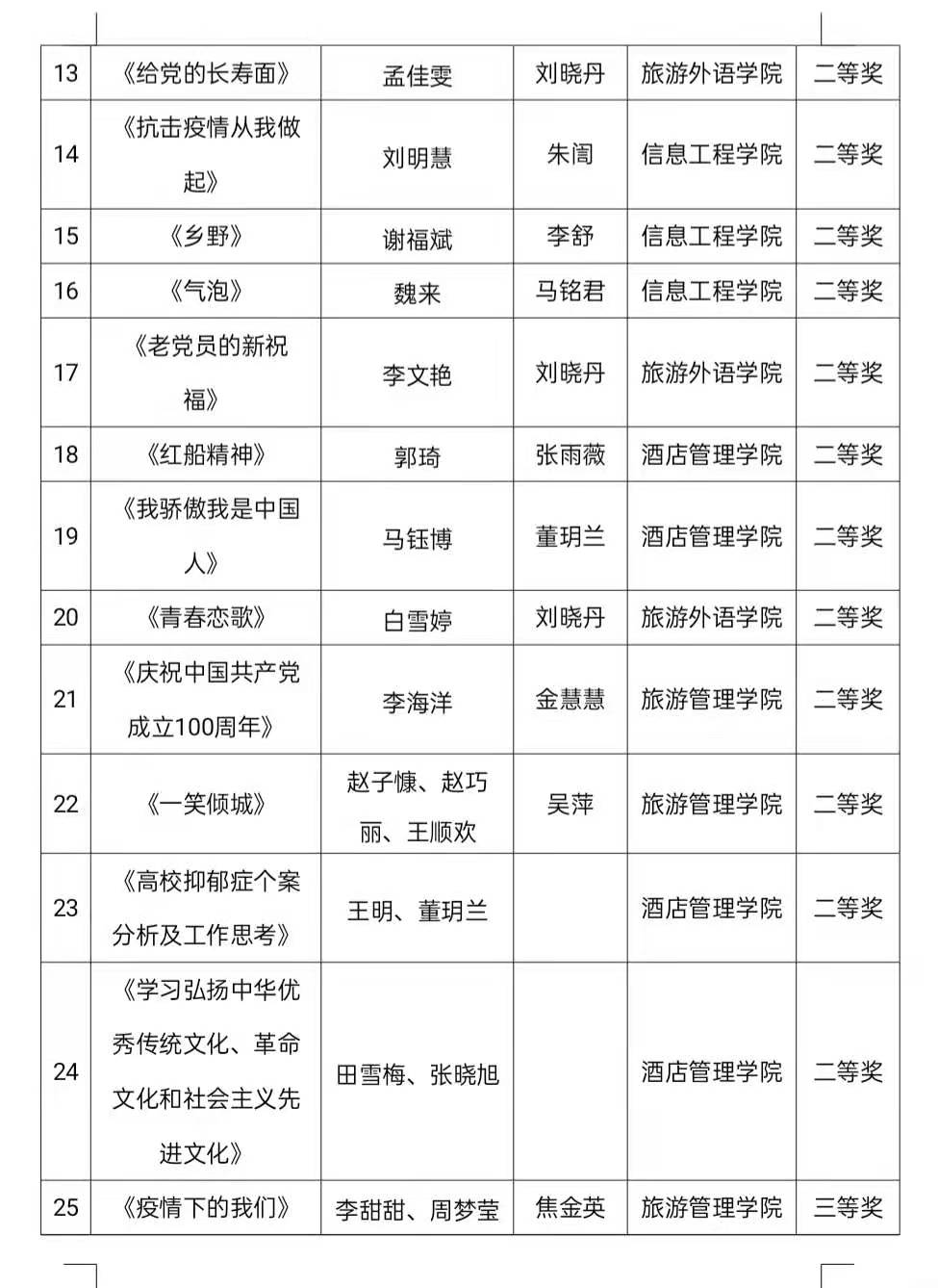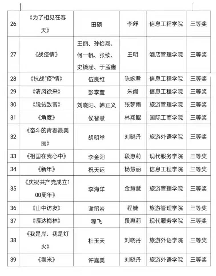 为深入学习贯彻习近平新时代中国特色社会主义思想,全面贯彻党的十九大和十九届二中、三中、四中、五中全会精神,切实将习近平总书记关于党史、新中国史、改革开放史、社会主义发展史学习及新冠肺炎疫情防控工作的重要讲话和指示精神贯彻落实引向深入,围绕迎接建党一百年行动,加大优秀网络文化供给力度,推动广大师生积极参与网络文化作品创作生产,扩大高校网络文化影响力,不断强化守正创新,增强新时代pp电子思想政治工作的吸引力和实效性。按照《pp电子游戏平台网站关于举办第一届大学生网络文化节和高校网络教育优秀作品推选展示活动的通知》要求,经过各二级学院选拔推荐、专家评审、学院研究,决定授予旅游外语学院等3个学院“优秀组织奖”荣誉称号;张雨微、种强强等83名师生作品荣获大学生网络文化节和高校网络教育优秀作品推选展示活动一、二、三等奖。