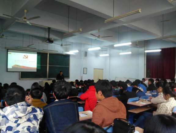2016年11月2日,信息工程系41人在东教一楼北阶梯教室由烹饪食品系主任何蜀川老师主讲的《四讲四有》。