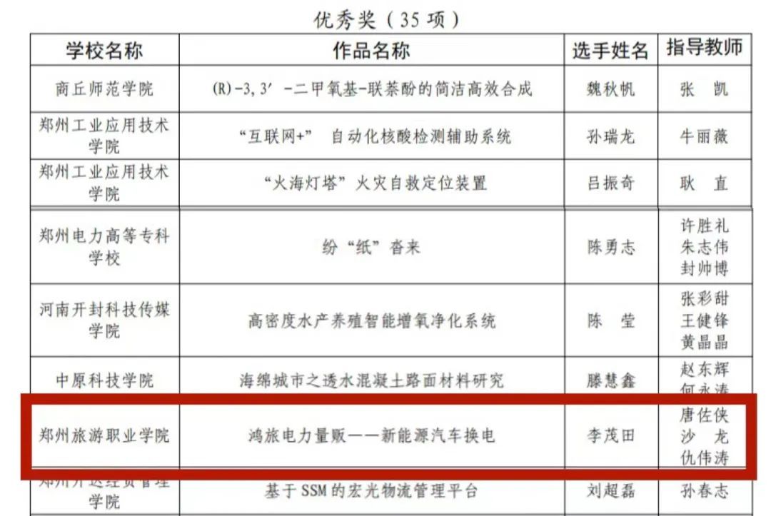 河南省大学生校园科技创意大赛获奖名单