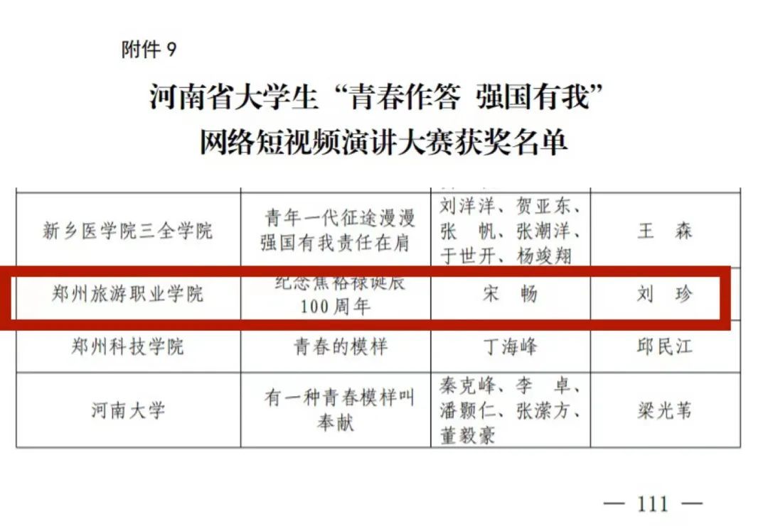 河南省大学生“青春作答 强国有我”网络短视频演讲大赛获奖名单