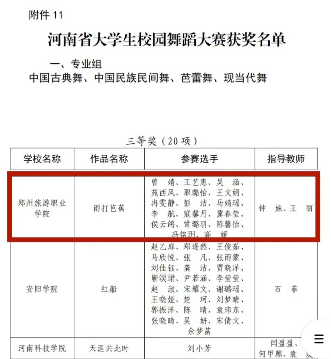 河南省大学生校园舞蹈大赛获奖名单