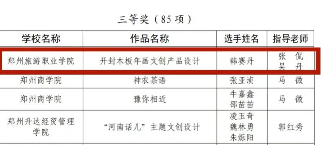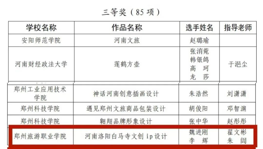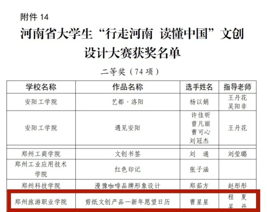 河南省大学生“行走河南 读懂中国”文创设计大赛获奖名单