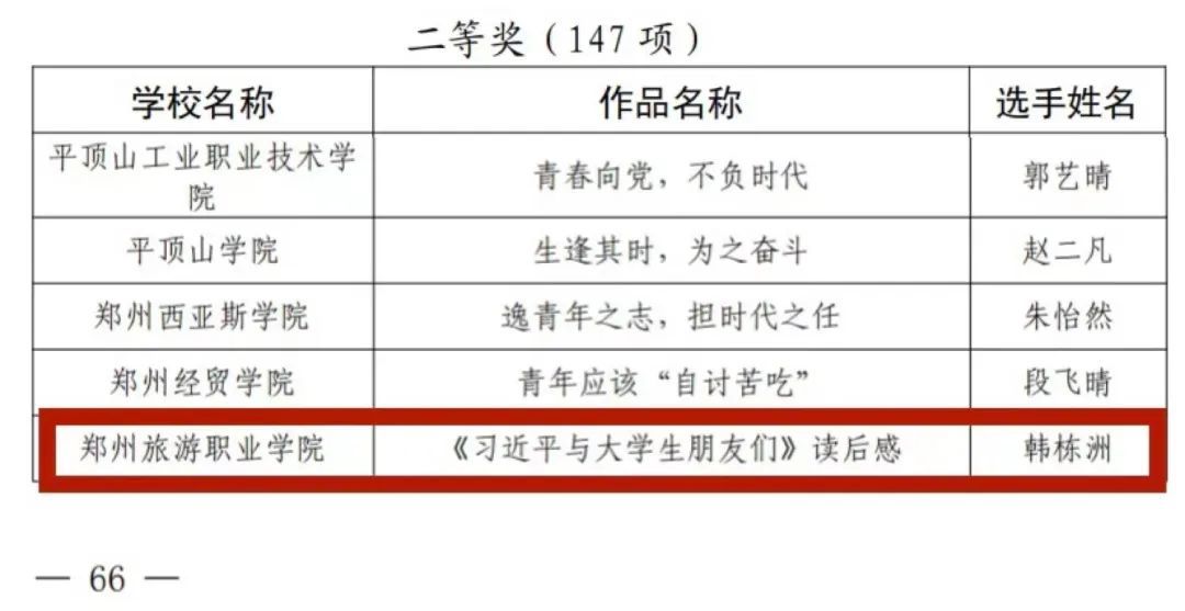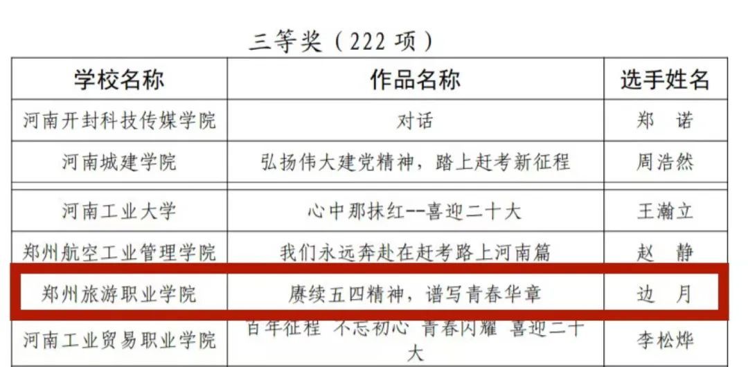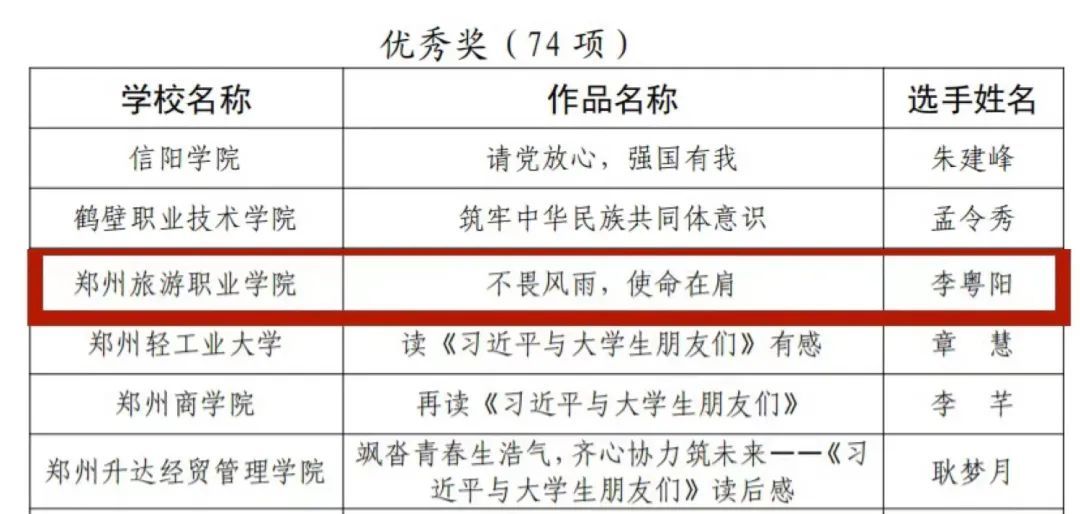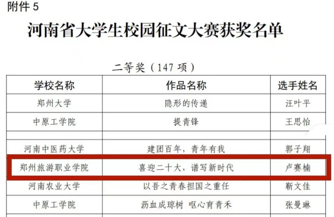 河南省大学生校园征文大赛获奖名单