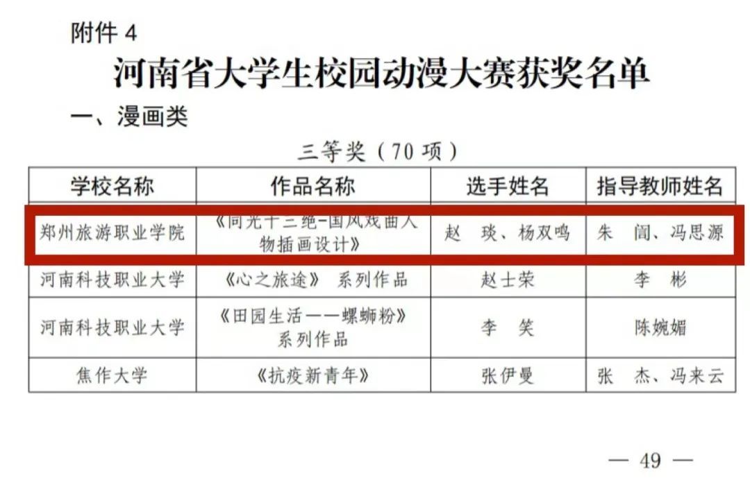 河南省大学生校园动漫大赛获奖名单