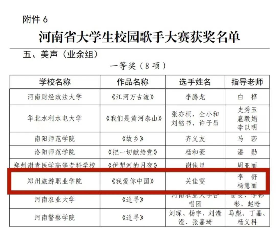 河南省大学生校园歌手大赛获奖名单